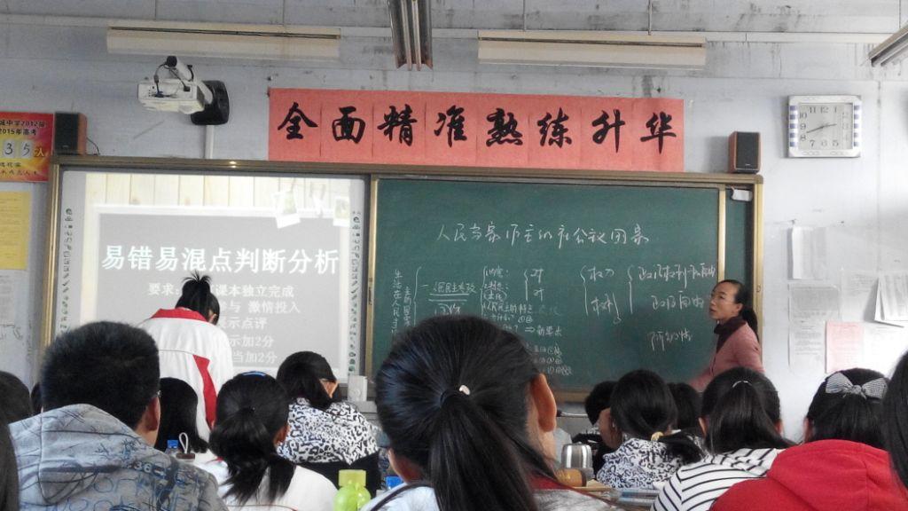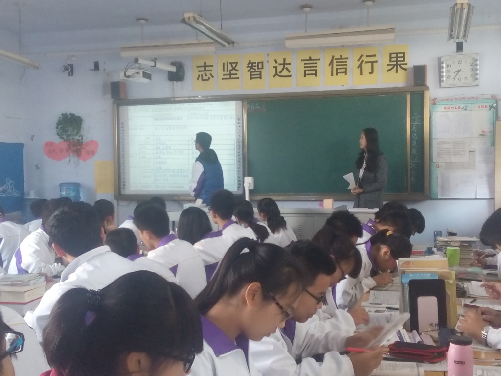 活动的第一个环节是听课学习。学校课堂改进中的先进教师高妙丽、李玲、纪宁宁、刘兴华为新进教师出示了示范课。总体来说,他们的课堂体现了学校“一案三学四步”的课堂改进模式,凸显了学生的主体地位,自主合作、小组交流相结合,探究、展示与点评激发了学生思维的火花,课堂成为学生获取知识、提升能力的快乐殿堂。课堂内容生动,紧密贴近现实,注重了答题规范引导和学习方法、规律的总结,课程整合意识浓厚,多媒体有效辅助了教学,教学激励机制科学,部分教师将微课和实验教学引入课堂,体现了较高的学科和综合素养。