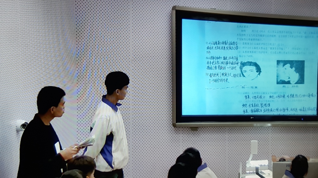 首先执教的是高二历史学科刘华老师。刘老师在与本组教师磨课的基础上设计出学案,利用先进的教学手段在录播教室进行了授课。课堂环节完整,重点突出。“我心中的历史”课前演讲、“小老师”梳理基础知识以及学习任务展示充分体现了学生的主体地位。教学手段和方法运用灵活,视频、课件和展台有效辅助了教学,学生自主探究、合作学习以及教师的拓展深化使课堂思维层层提升。教师还利用文学和艺术知识帮助学生理解,增强了知识的趣味性。加强对学生记忆和做题方法的指导,训练具有规范性。