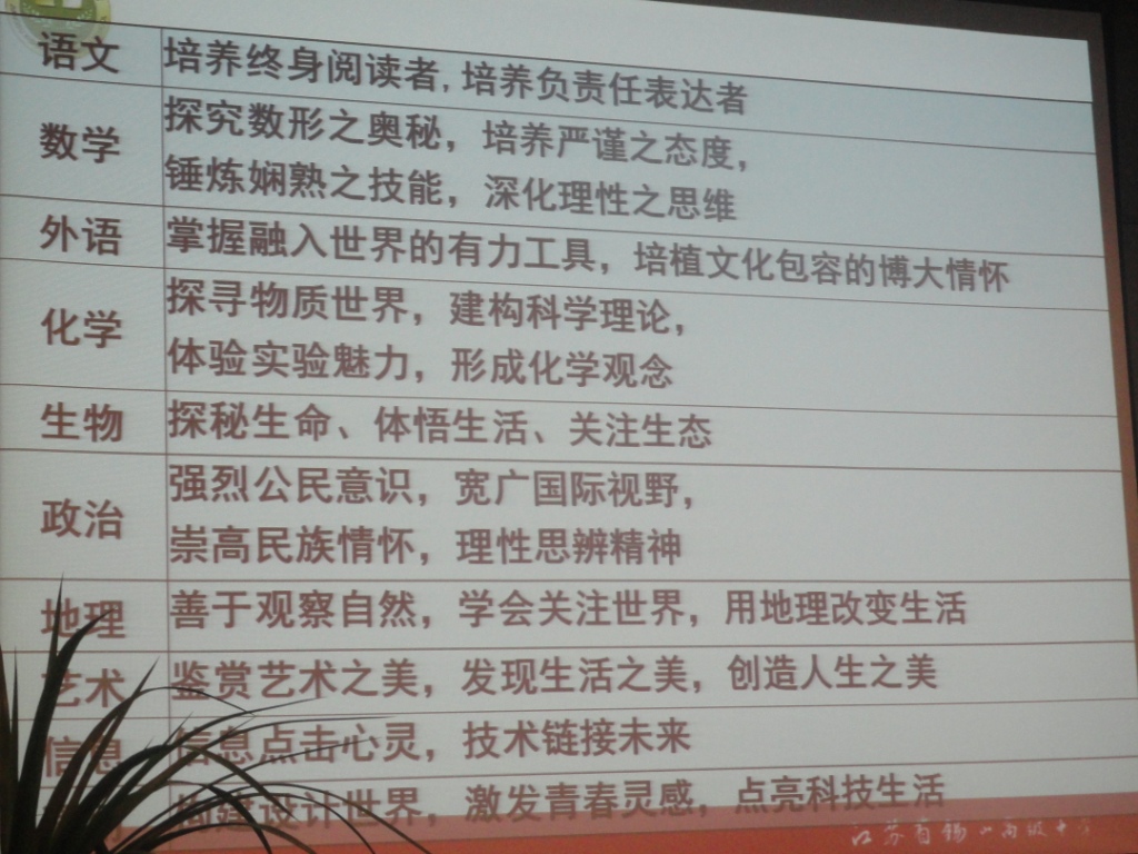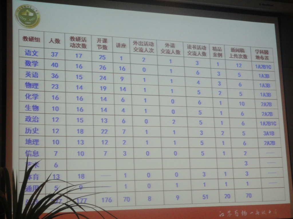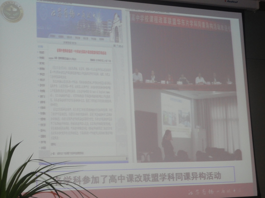 语文组以江苏省“语文课程基地建设”为契机,从改变学习环境入手,改变教学方式和学习方式,借助具体的语文综合实践活动,在语言文学课程领域开展体验学习的实践探索。开发出了“阅读”“诗歌朗诵”“话剧汇演”“演讲与辩论”“问·答”“倾听”等多种实践体验性课型。信息技术教研组和研究性学习教研组则探索在学科整合中学会用IT技术开展探究学习。地理、艺术、体育学科正在酝酿开展“基于IPAD的移动学习”。