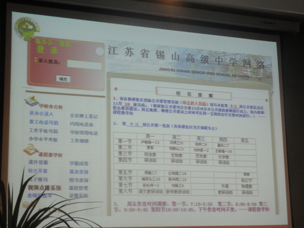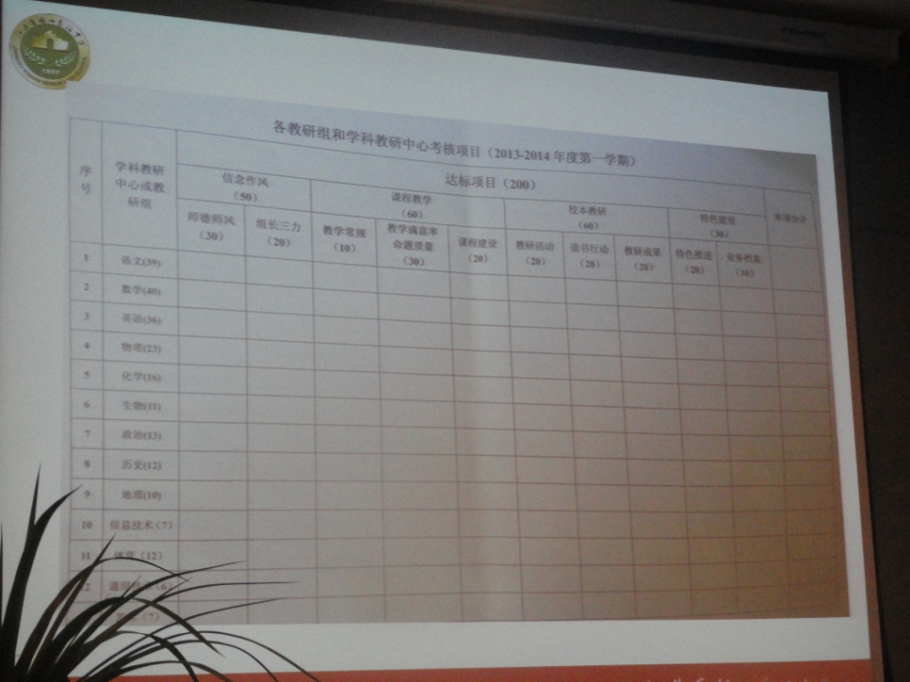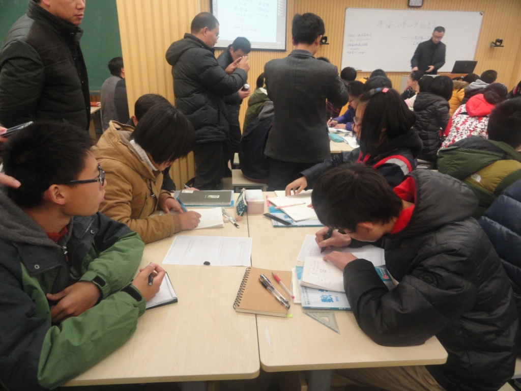 接着,数学教研组组长杨志文做了《学科发展规划与促进学习的评价专题报告》,其间穿插了骨干教师陈春芳、吴莹莹、王洪涛的经验介绍,涉及教学目标的设计、课堂教学评价、点阵数码笔和高拍仪的应用等内容。