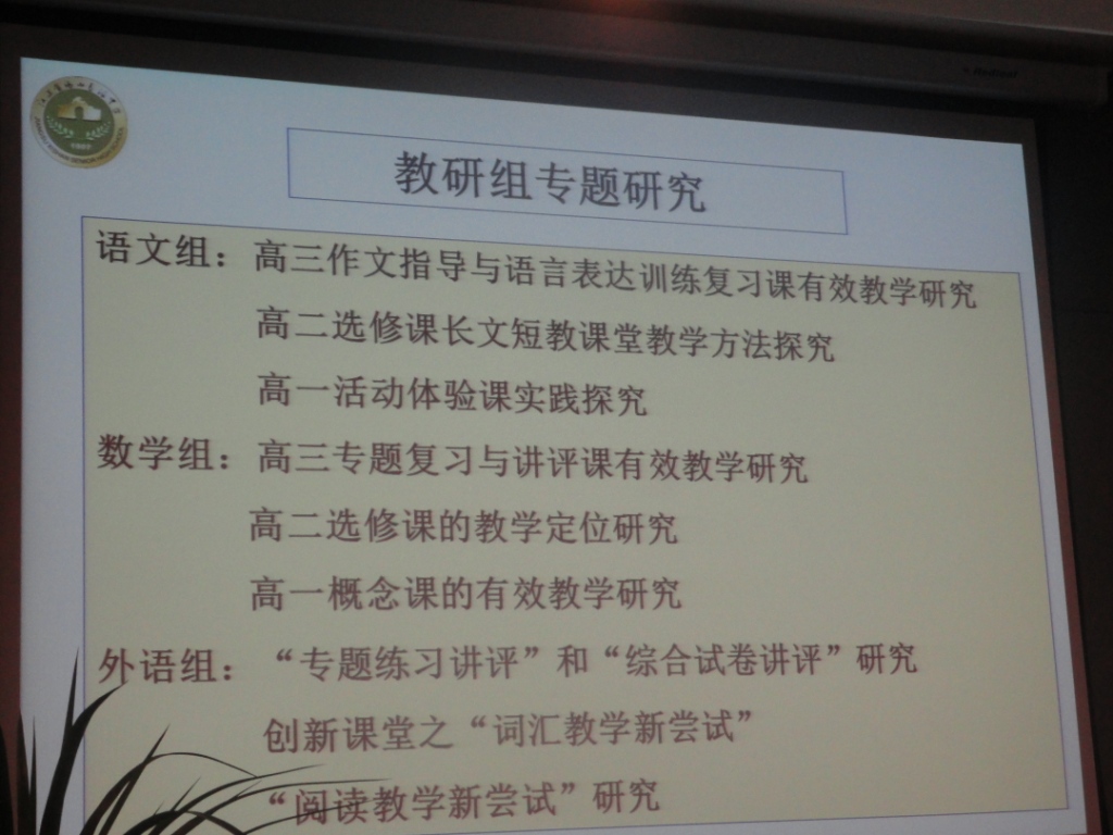 第二阶段(2009年——2012年)倾力打造学科教研中心:开展了第二轮学科教研组发展规划建设,提出“以课题研究为方向引领,以转变教研方式为行动举措,以创建学科教研中心为教研组建设的推动力,打造学术坚实、可持续发展的教研组。”