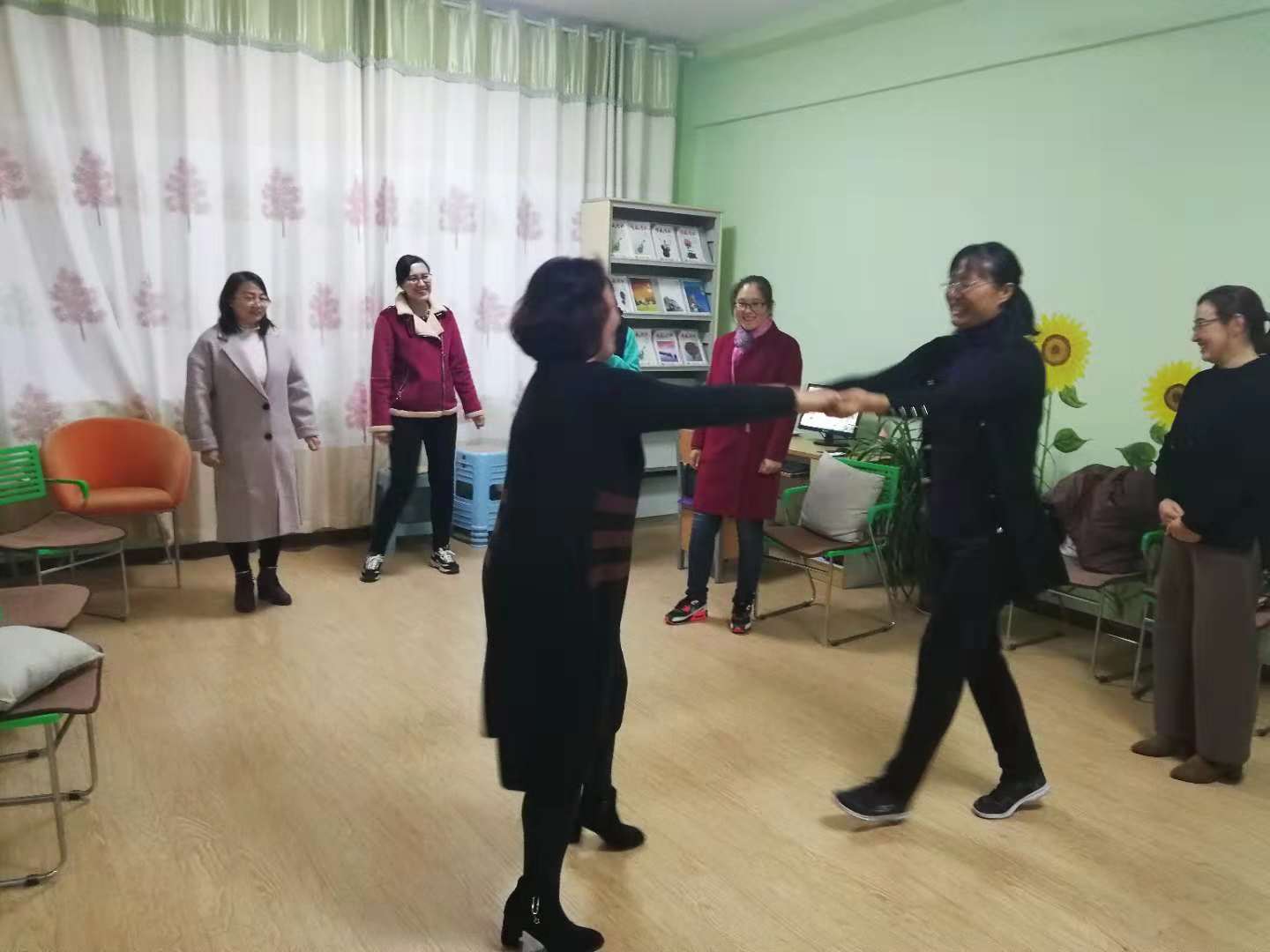 在柔和的音乐声中,参加沙龙的老师们缓缓地进入状态,在音乐的旋律里舞动,舒展身体,透过音乐、音符、节奏和律动的生命能量带领肢体的能量舞动,提升感受幸福的能力。