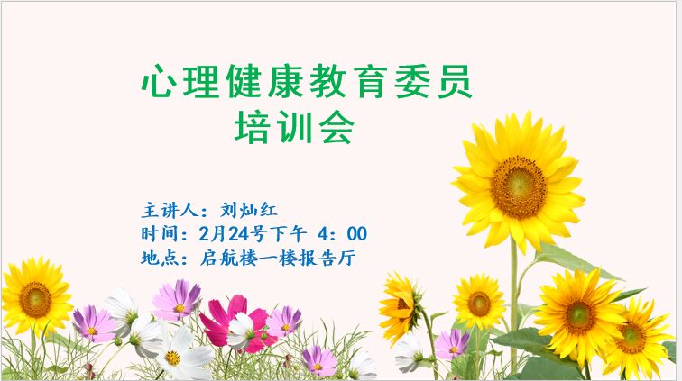心理健康教育委员是学校心理健康教育工作的基础力量,本次培训进一步提高了他们对心理健康的重视程度,使他们了解了相关心理知识,明确了班级心理健康教育委员的责任与使命,为更好地发挥心理健康教育委员在心理健康教育工作中的作用奠定了扎实的基础。
