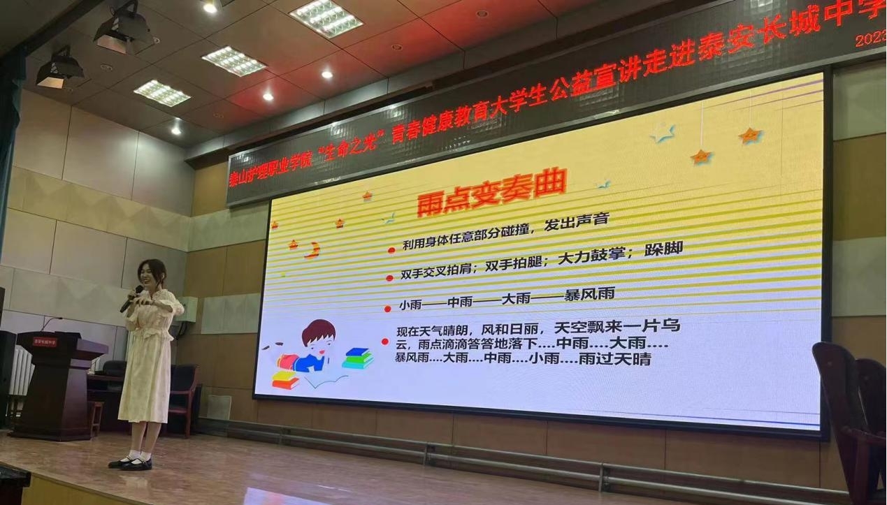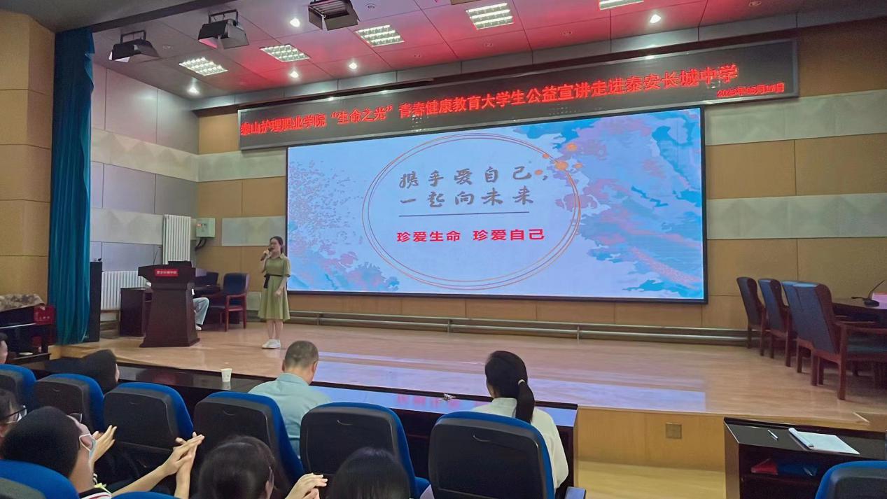 泰山护理职业学院的同学就珍爱生命与健康以及情绪的调节管理两方面作分享,提醒同学们要了解自己,关注身体的需要,理智应对危险,同时并就学习生活中的情绪调节给出了建议和方法。