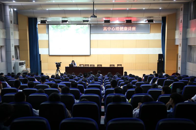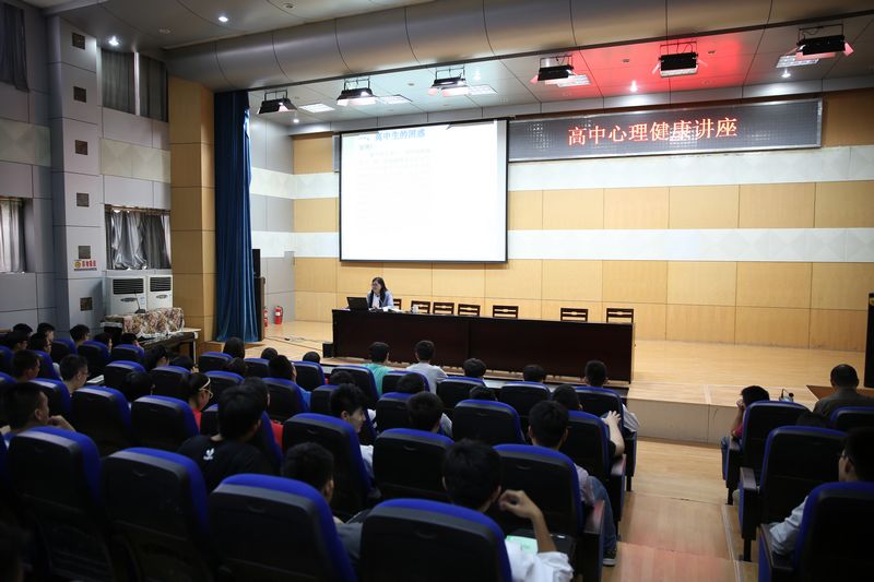 讲座在同学们热烈的掌声中开始。高老师首先介绍了本次讲座的主要内容、意义,接着从一个具体的案例----高中生的困惑,带领学生们分析原因,在肯定同学们分析的基础上提出了具体的解决办法。然后她从“学习动机”、“学会沟通”“悦纳自己”等方面进行了详细的论述。高老师为活跃现场气氛、增强讲座的实用性,准备了一些小游戏,如两个同学掌心相对体验“与自己对抗与别人对抗都改变不了什么”;让同学们说出心里话,学会呼吸放松法调节情绪等。讲座过程中, 高老师耐心贴切的讲解和风趣幽默的语言,引发同学们的阵阵掌声,期间同学们还积极参与互动,共同探讨,现场气氛高潮迭起。最后讲座在同学们热烈的掌声中结束。