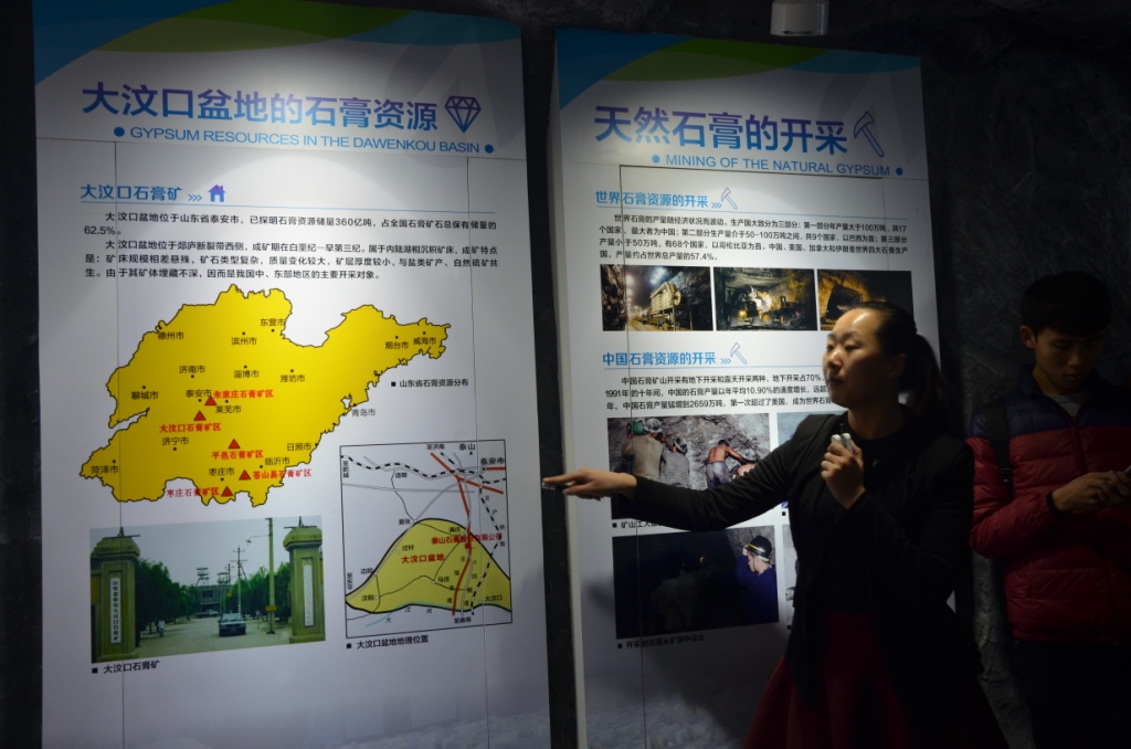 泰山石膏是全球最大的纸面石膏板专业制造商,有40余年的历史。泰山石膏展览馆以泰山石膏的成长与发展为主线,以企业文化科普知识为结合点,围绕“和谐、创新、朴实、尊重”这一主题,全面展示泰山石膏充满现代活力的企业形象。展厅有效面积达990平方米,分为科普厅、企业厅、科技厅、品牌厅、产品厅、民族厅以及文化厅七个厅。通过文字、照片、仿真模型、实体产品等形式,生动形象展示石膏的科普知识、工业副产石膏的常识、公司的经营情况以及纸面石膏板、装饰石膏板、轻钢龙骨、护面纸等产品。同时,展厅内还配有专业全息投影、企业宣传片、三维立体动画等。