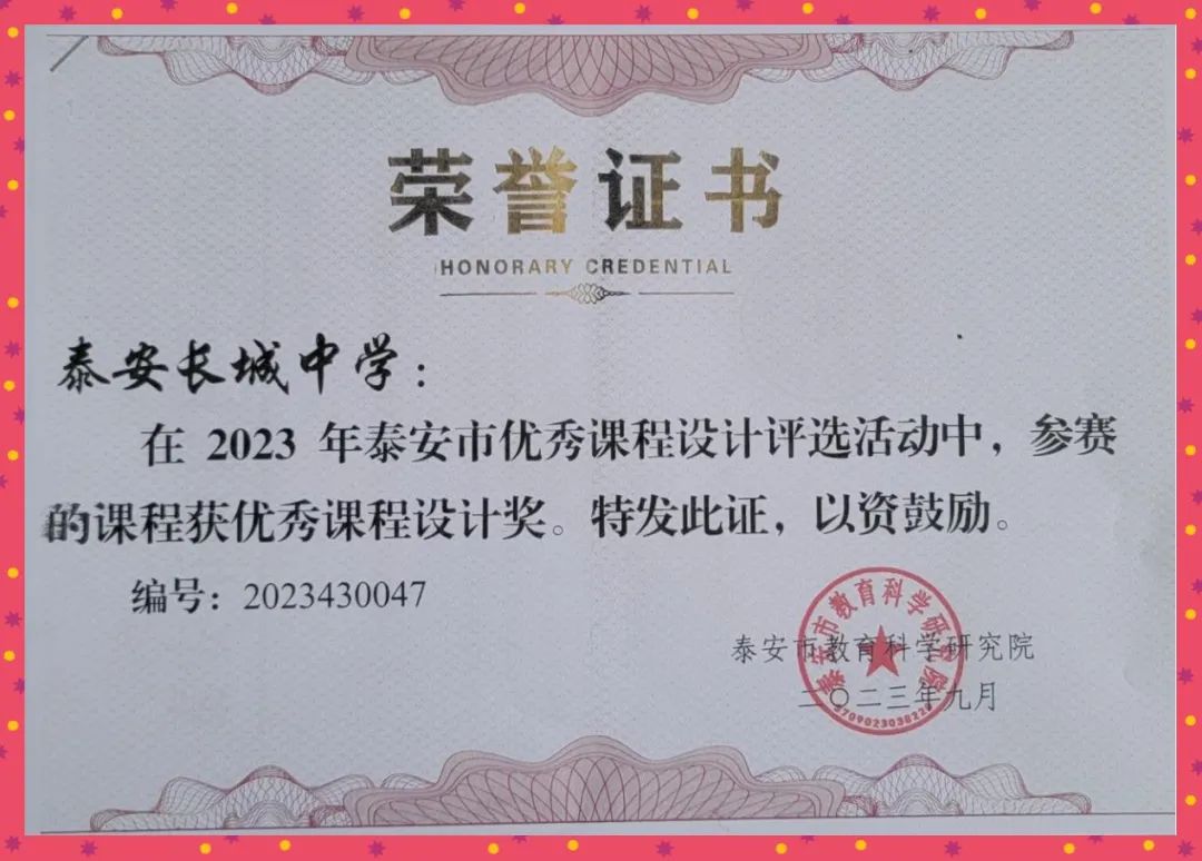 近日,在2023年泰安市优秀课程设计评选活动中,德赢天下_www.vwin01.com荣获优秀课程设计奖(集体奖)。其中,课程中心推送的《德赢天下_www.vwin01.com课程规划方案》、高飞老师推送的学科教学方案《高中语文戏剧教学研究》、张丽老师推送的综合实践活动课程方案《保护环境,共建美好家园》、刘兴华和徐春华老师推送的校本课程方案《我们共有一个海洋》分别荣获A类、B类、C类和D类优秀课程设计奖。