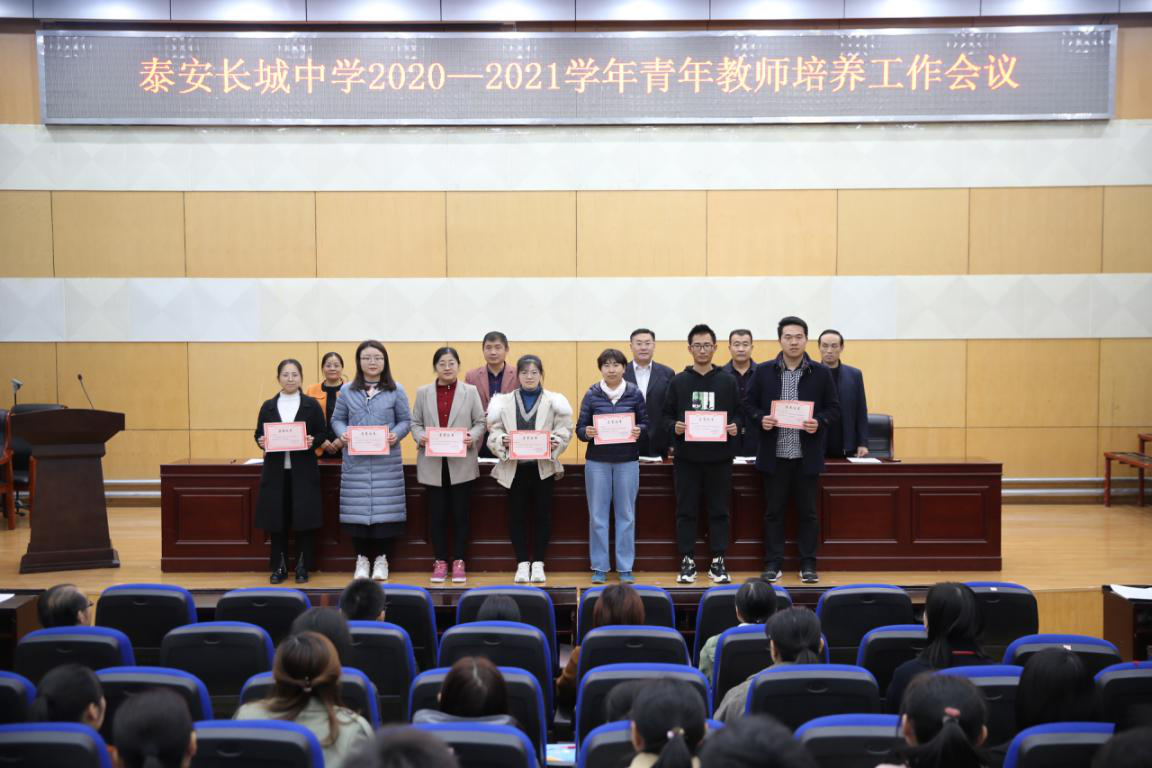 会议第二项,张连刚副校长宣读了2019——2020学年青蓝工程新教师结业名单,表彰了在青蓝工程实施中的先进个人。先进教师上台领奖。