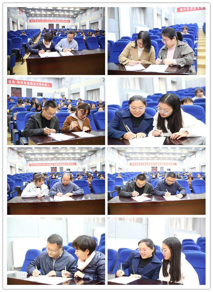 会议第三项,教务处张纪广主任宣读了学科新老教师师徒结对名单,政教处陈长征主任宣读了班主任新老教师师徒结对名单。