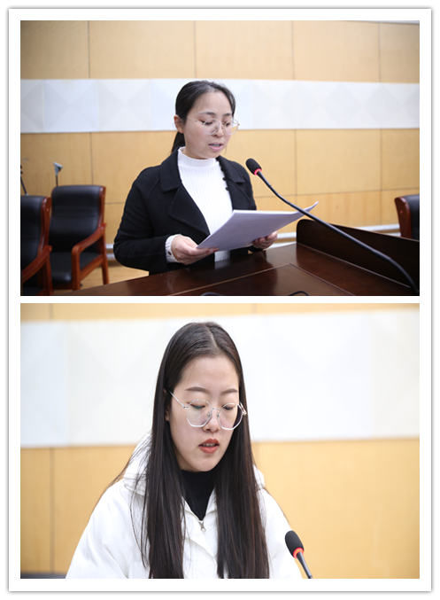 2017年新任职教师代表侯文霞发言,阐述了导师在自己成长中的重要作用,感恩于他们的悉心指导与倾囊相授。从“用爱心做有温度的教育”“用耐心做有规范的教育”“用信心做最长情的教育”等方面阐发了自己对教育教学的理解,表示要“继续向师傅学习,向周围同事请教,不断提升自己”。2020年新任职教师代表赵丽发言,讲述了自己在从学生到教师角色转变、面对迷茫时周围同事给与的指导和帮助,从“要有创新意识,树立终身学习的目标”“及时反思问题,调整教育教学方式和思路”“真正爱学生,因材施教,做有温度的教育者”“提升理论水平,积极参加学校科研”“积极向上,充满正能量”等方面交流感悟,表示“坚守岗位,做好学问,和各位同事一起携手,培养好学生,管理好班集体,争取做一名品德高尚,业务精湛的优秀教师。”