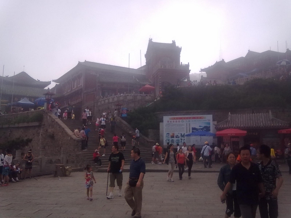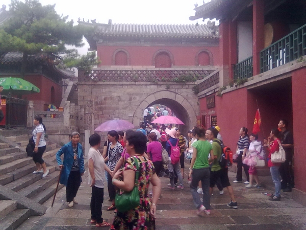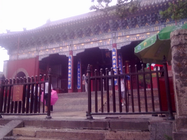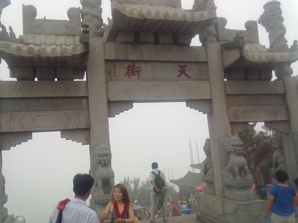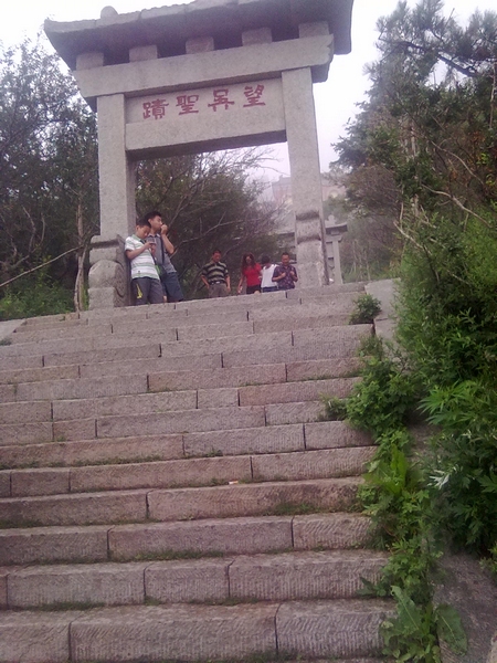 雨不大,一直下了半个小时的样子,雨停了,我们继续漫步岱顶-------近一年没有来极顶了,我拿着手机,拍下了天街、碧霞祠、瞻鲁台、观日峰、仙人桥等处。