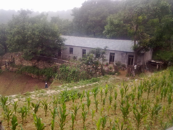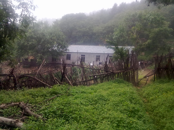 不是帽檐山,竟是月观峰 在三岔林场我们受到了一条小狗在远处对我们表达着欢迎之声,没有见到住户主人的身影,我们继续前行。