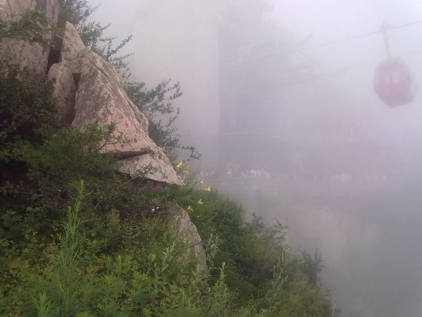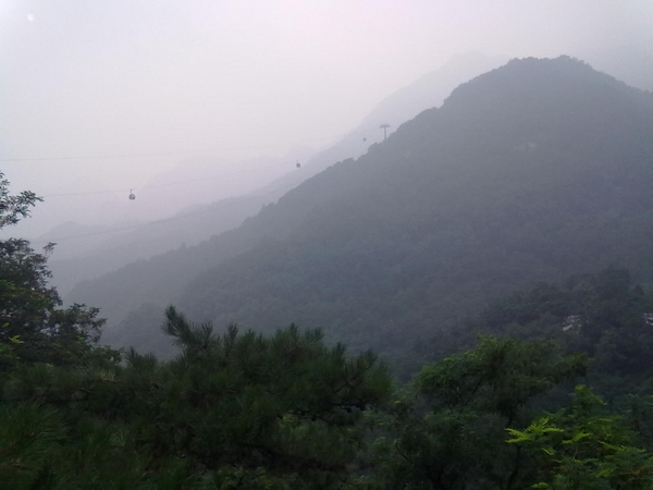 我们很快到了中天门,抬头远望,索道上得吊车依稀可见。
