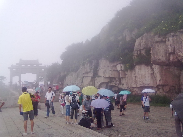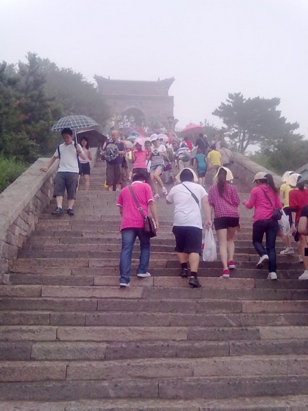 雾气迷茫,人声鼎沸,快爬到山顶的乐山老师惊呼起来,“我们到岱顶了!”