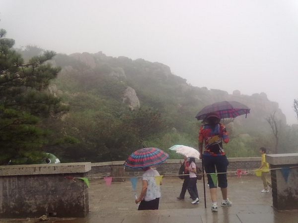岱顶遇雨 中午一点多,我们爬上了岱顶,并在岱顶吃了午餐。