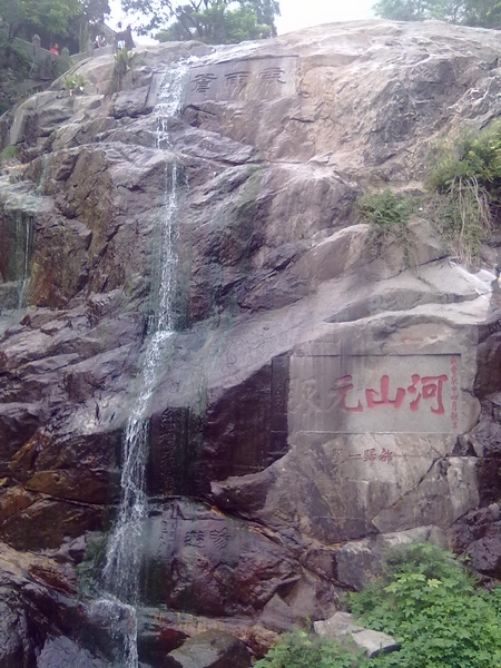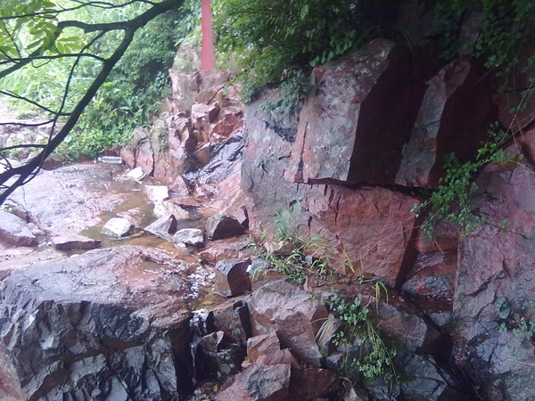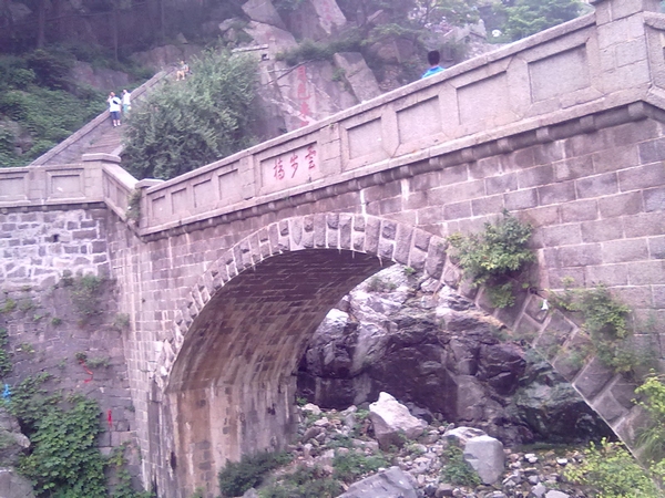 晚上七点回到了家 从小路出来,到了盘道的“五大夫松”处。 云步桥处的小瀑布(此处曾是宋真宗封禅泰山时安营扎寨的地方)--------如果不是今年天旱,瀑布如果水更大一些,那才壮观呢!