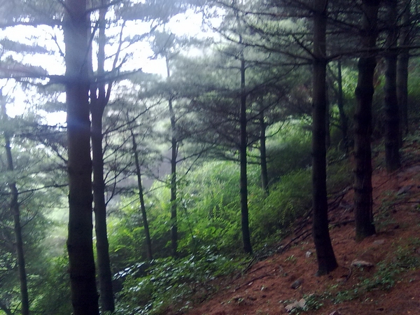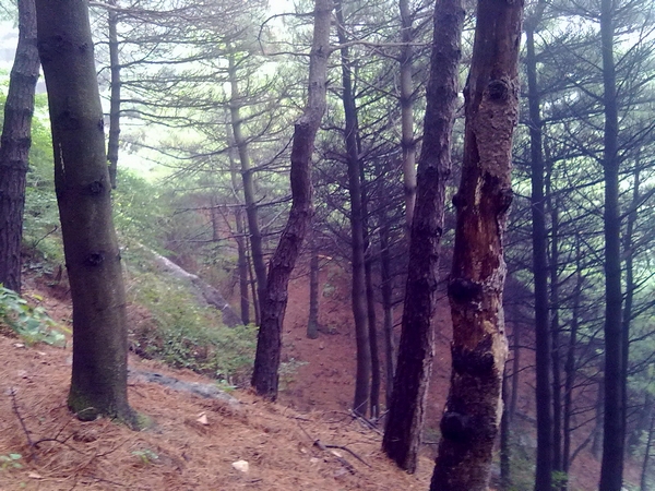从甘华泉抵达五大夫松 从甘华泉继续前行,道路初始还比较好走,当走过这样一片如原始森林般的松树林以后,道路就变得极其难行。