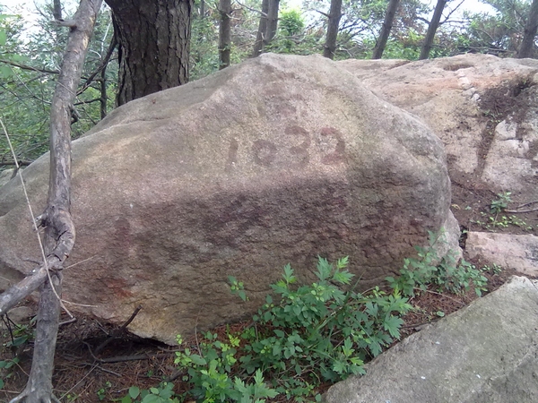 有人在一块石头上标注了九女寨的海拔高度,1032米,怪不得我们爬到这里已经是气喘嘘嘘了,这儿比中天门还要高了。