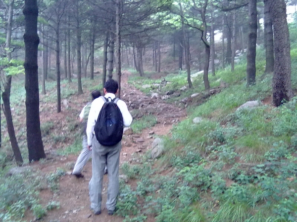 走向甘华泉 在岱顶游览过后,我们确定避开游客,从小路去甘华泉,然后复归盘道。