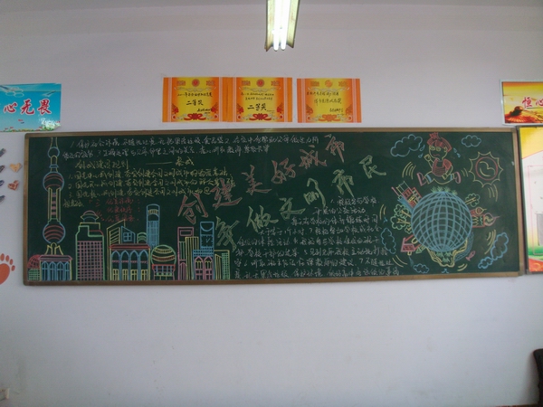 为响应创建全国文明城市的号召,做好宣传教育工作,www.vwin5.com进行了一次以“创建文明城市,争做文明市民”为主题的板报评比活动,各班出了一期内容丰富、设计新颖、教育效果良好的主题黑板报,让每一名学生都充分认识到了创城工作的重要性,增强了创城的荣誉感、使命感、责任感。板报评选结果如下: