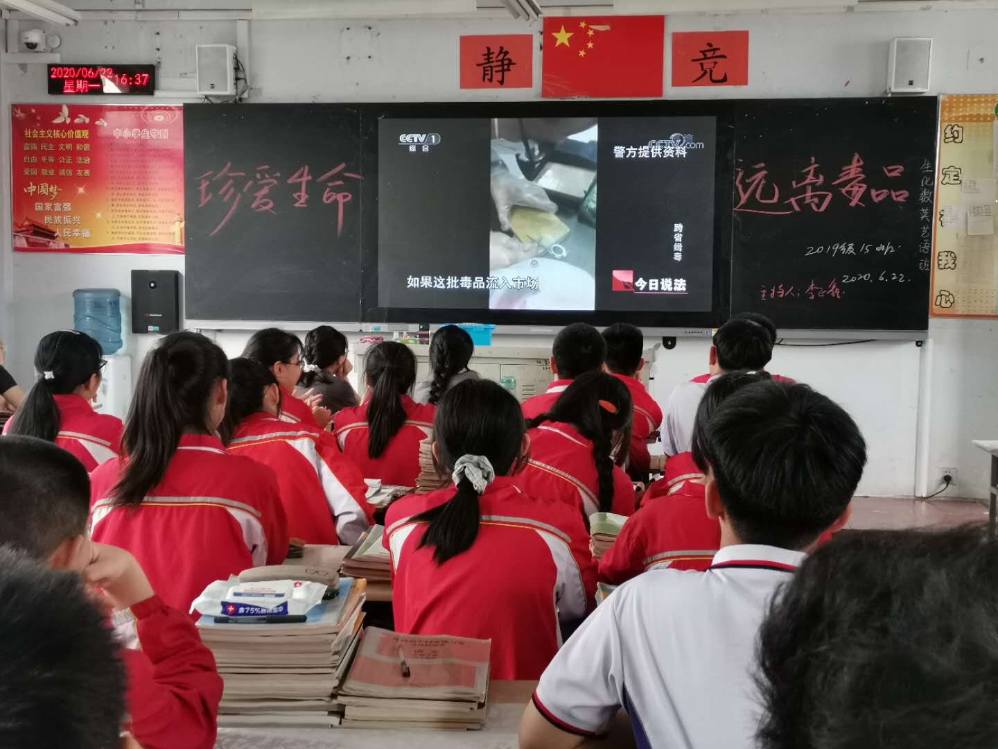 2020年6月22日下午,德赢天下_www.vwin01.com组织“珍爱生命 远离毒品”班会课,对学生进行禁毒教育。