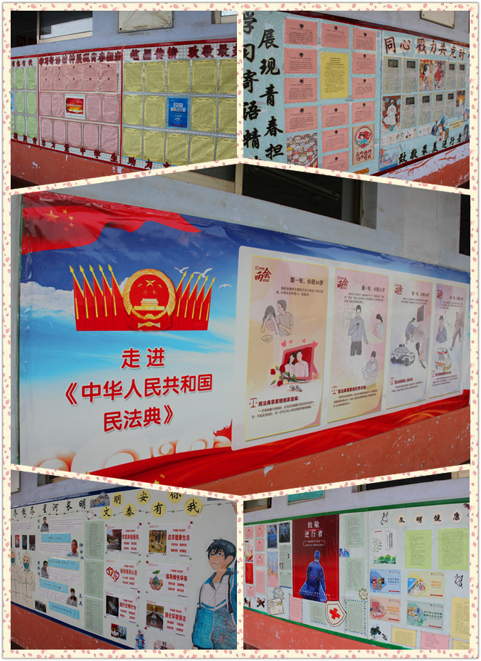 各个班级在班主任的具体指导下,充分发挥学生的主观能动性,精心设计,认真布展,打造出了一期图文并茂、内容丰富、亮点突出的楼道展板。学校还利用楼道展板展示了“走进民法典”、“致敬科技工作者”、“新时代好少年”、“国家勋章和国家荣誉称号获得者事迹”等内容,进一步提升了校园文化内涵,充分发挥了校园文化的隐性育人作用。