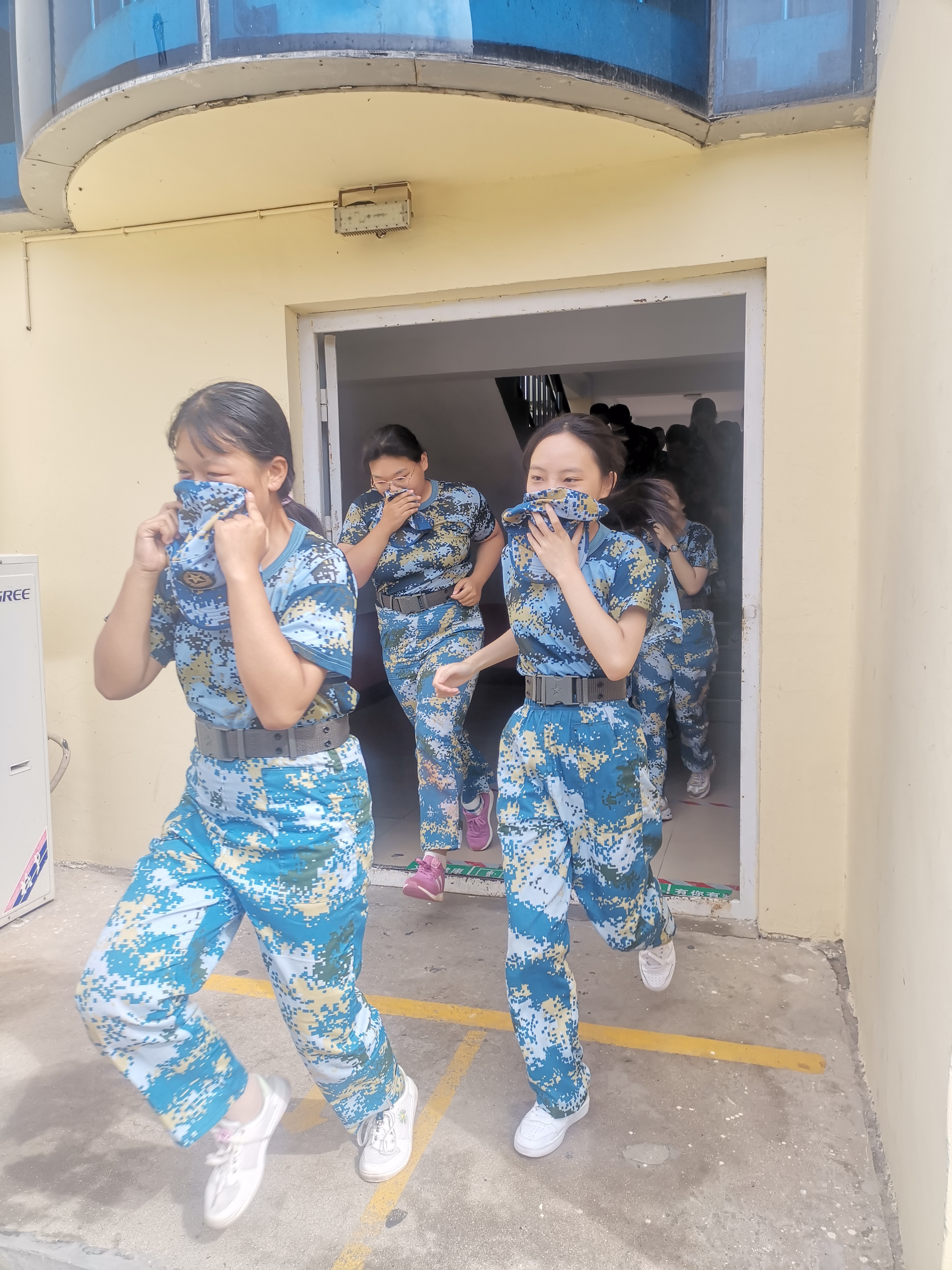 5日上午9点40分,哨声准时响起,应急疏散演练拉开序幕。在充分准备和妥善安排之下,教室的学生们在老师和教官的引导下,用帽子捂住口鼻,靠着墙,排着队,井然有序地迅速撤离教学楼,按预定的疏散路线撤离到体育场并迅速集合,教官立刻整队,清点人数,层层向上汇报。2021级师生全部安全撤离仅用时2分10秒。本次应急疏散演练活动在紧张有序中,达到了预期的演练效果。