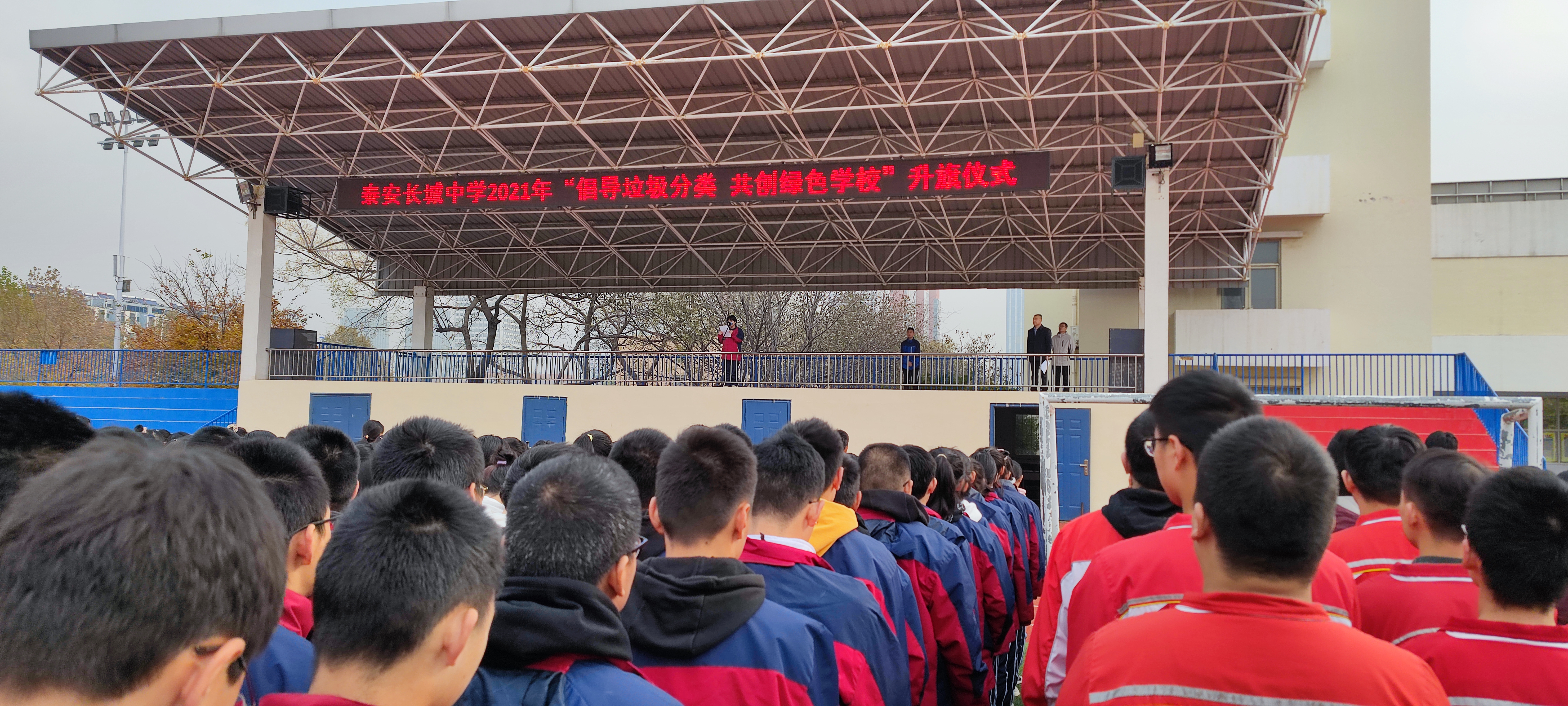 2021级臧云扬同学围绕“低碳环保,创建绿色学校”主题,从提高绿色文明意识、爱护花草树木、养成良好卫生习惯、三爱三节等方面做了国旗下演讲。政教处陈长征主任对垃圾分类投放进行了指导,并对文明学生、文明宿舍和文明班级的评比提出了要求,希望全体师生共同努力,人人参与,增强环境保护意识,提升生态文明素养,为创建 “泰安市绿色学校”贡献自己的力量。