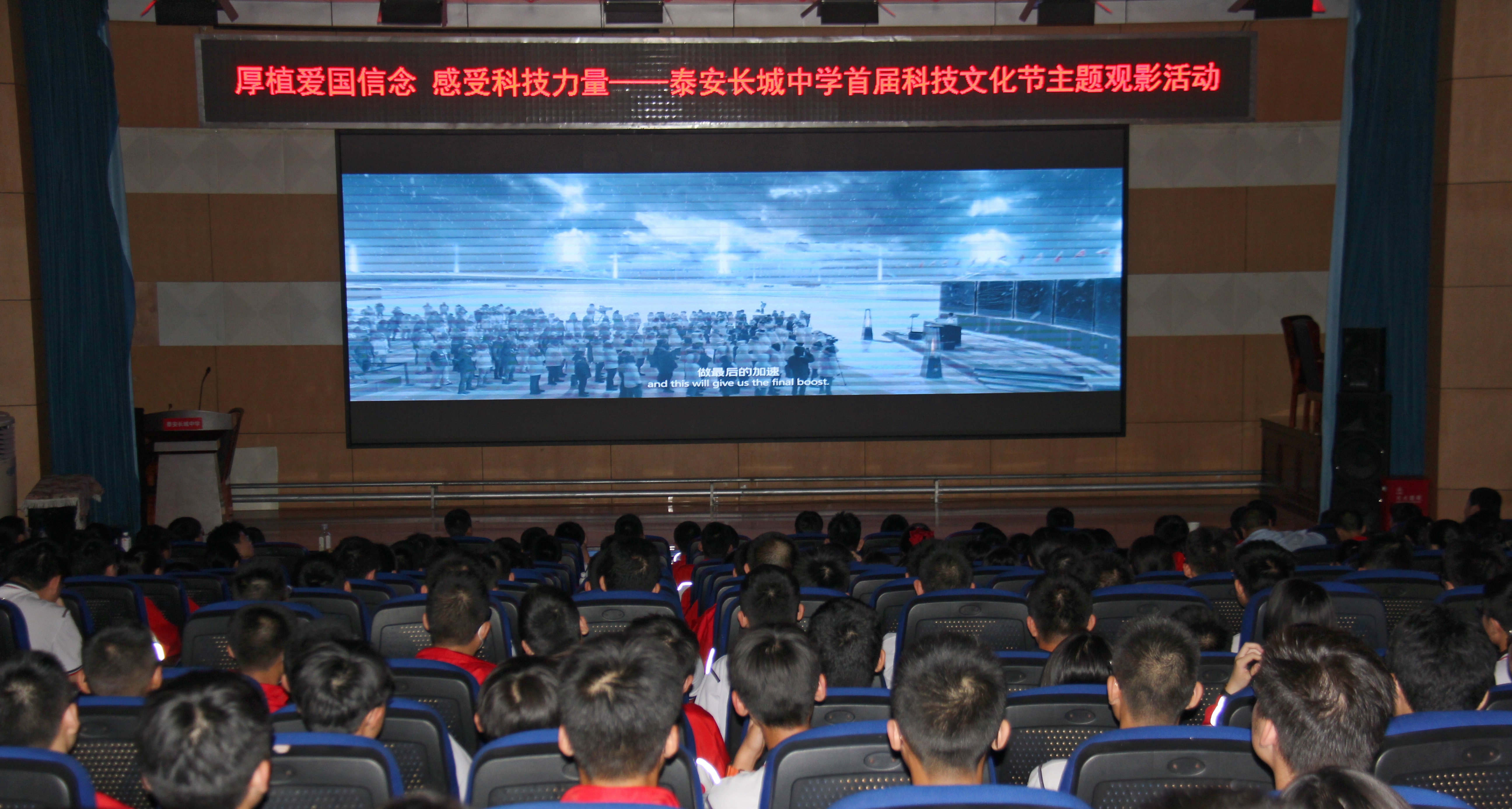 为落实立德树人根本任务,进一步培育践行社会主义核心价值观,引领师生领会“家国情怀”和“人类命运共同体”的深刻内涵,根据学校首届科技文化节工作安排,5月20日晚,泰安长城中组织开展“厚植爱国信念 感受科技力量”观影活动,高一、高二师生集体观看科幻电影《流浪地球2》。