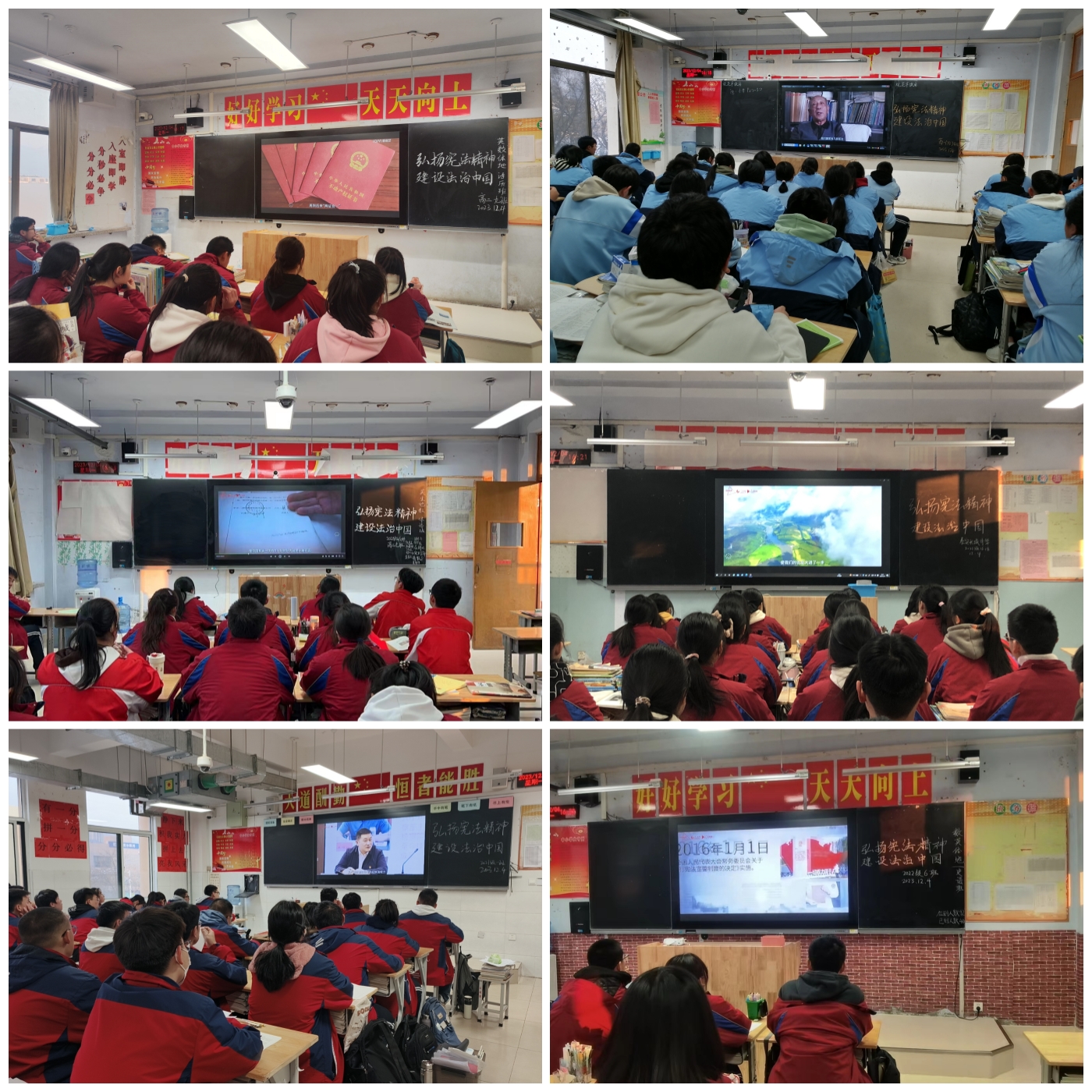 4日下午,各班组织召开“弘扬宪法精神 建设法治中国”主题班会。全体学生观看主题教育视频——《宪法守护着我们的美好生活》。各班主任利用主题班会,结合具体案例讲解,让学生了解宪法、崇敬宪法,弘扬宪法精神,增强学生的法治观念。