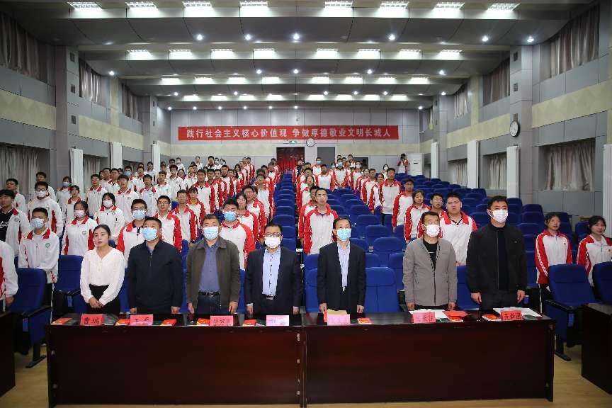 党委副书记、副校长刘庆良老师代表学校党委致辞,他对47名同学光荣地加入中国共青团表示祝贺,希望团员青年们铭记今天的青春誓言,脚踏实地、志存高远、德才并重、开拓创新,做有梦想、有行动的长城学子,承担历史使命和社会责任,努力成为堪当民族复兴重任的时代新人,无愧于光荣的“共青团员”称号,用实际行动为党旗、国旗、团旗增光添彩。