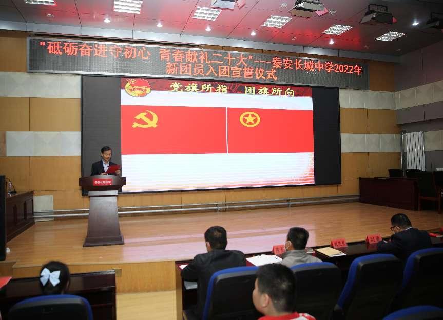 为迎接党的二十大胜利召开,庆祝建团100周年,加强学校共青团队伍建设,激励青少年坚定理想信念,绽放青春力量,勇担时代责任,5月9日下午,德赢天下_www.vwin01.com在启航楼报告厅隆重举行以“砥砺奋进守初心 青春献礼二十大”为主题的新团员入团宣誓仪式。学校党委书记、校长刘勇,党委副书记、副校长刘庆良,党委委员、副校长张万泉,政教处主任陈长征,团委书记颜斌,高二年级主任王磊,高一年级主任范新国,团委曹瑞老师及新老团员代表100余人参加仪式。仪式由团委书记颜斌主持。