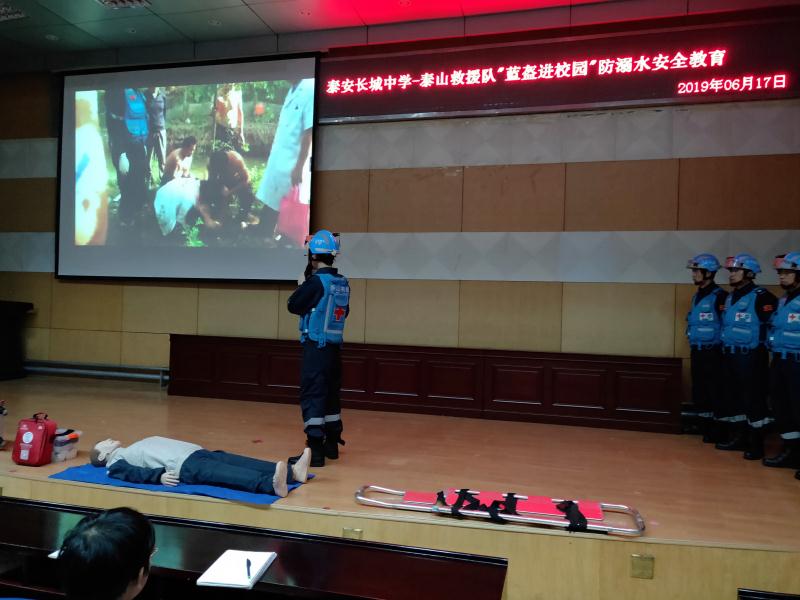 随着夏季来临,学生溺水事故进入易发、多发期。泰山蓝天救援队走进德赢天下_www.vwin01.com,给师生送来专业的“防溺水”安全教育讲座。