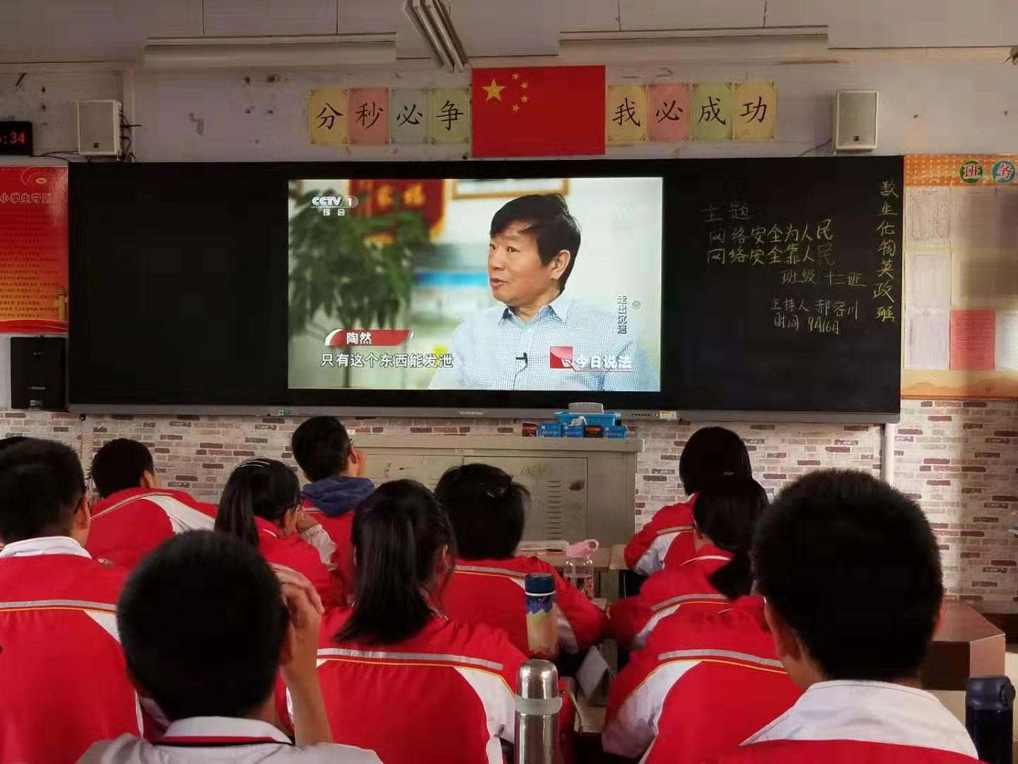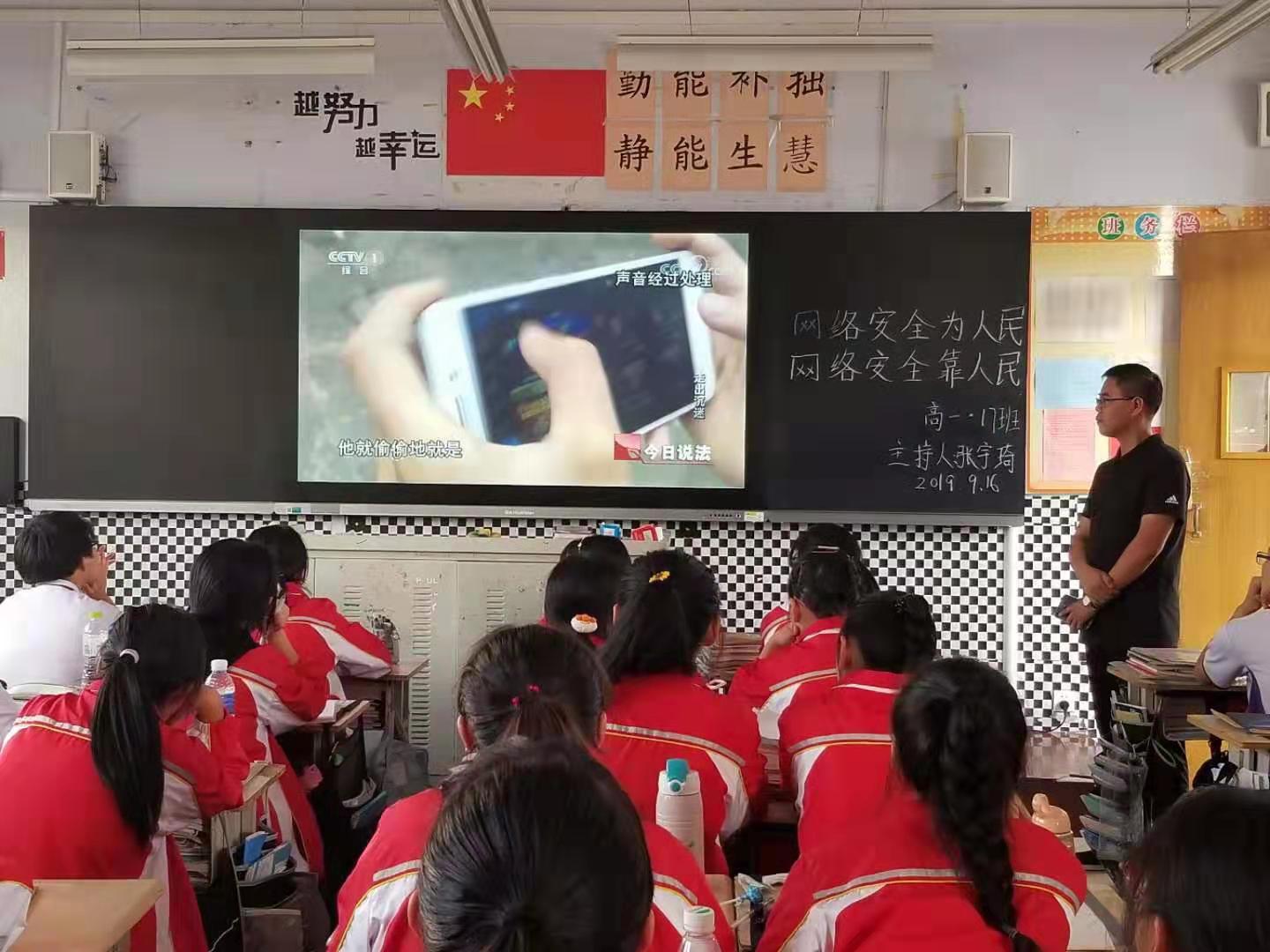 班会课上,同学们观看了《今日说法20180912期》,组织学习了《中华人民共和国网络安全法》(节选)的相关内容,并交流了自己身边的网络安全问题和本次学习的心得体会,学会了怎样安全上网、依法上网,如何保障个人信息安全。
