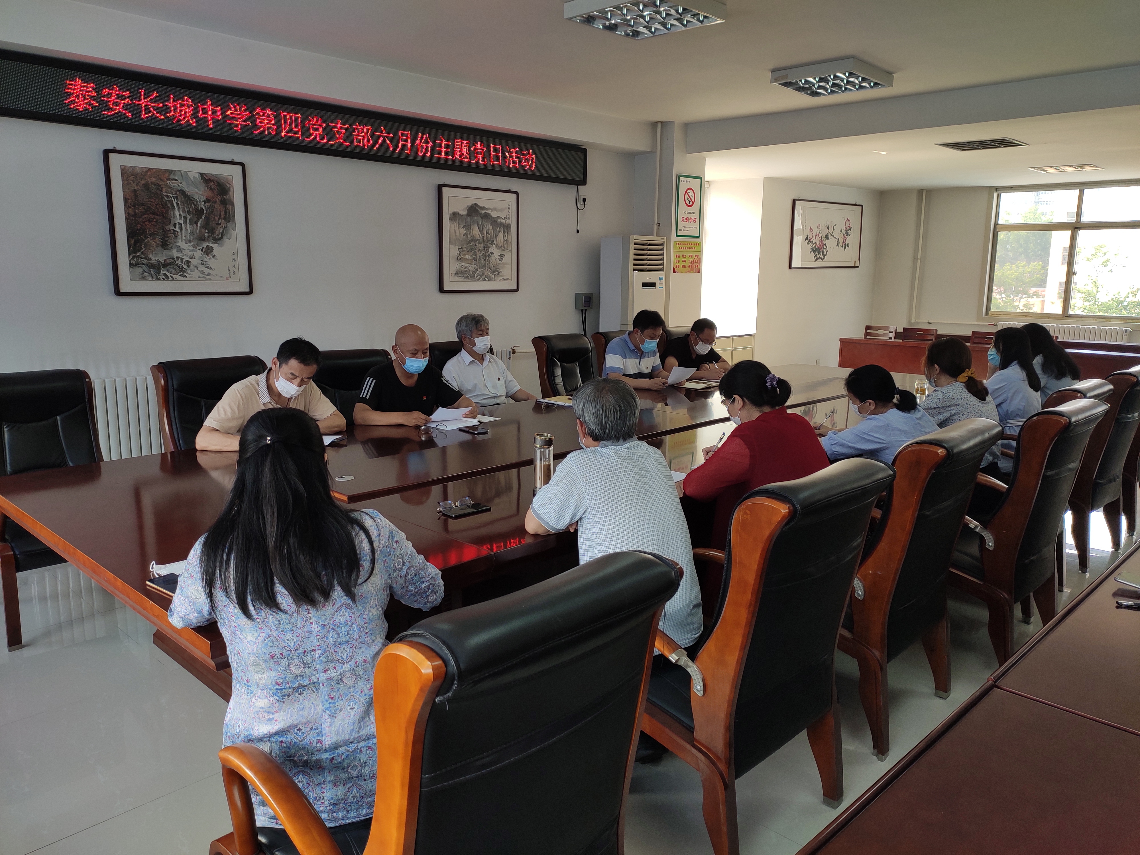 6月27日下午,德赢天下_www.vwin01.com第四党支部在逸夫楼二楼会议室组织六月份主题党日活动,全体党员参加活动,支部书记韩峰主持,学校党委副书记李宁全程参加。
