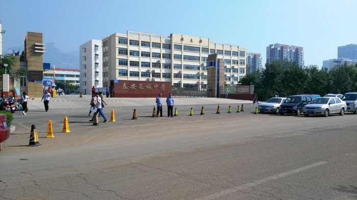 为确保学生在校门口的安全,学校领导高度重视,提前安排,各部门、年级通力合作,紧密配合。安保科提前给交警支队泰山区城西大队联系,请求他们安排交警,来学校门口指挥交通,疏散车辆。安保科全体人员提前到岗,用警示锥引导交通,耐心给家长做停车工作。