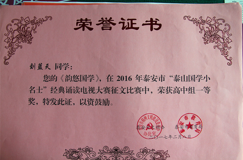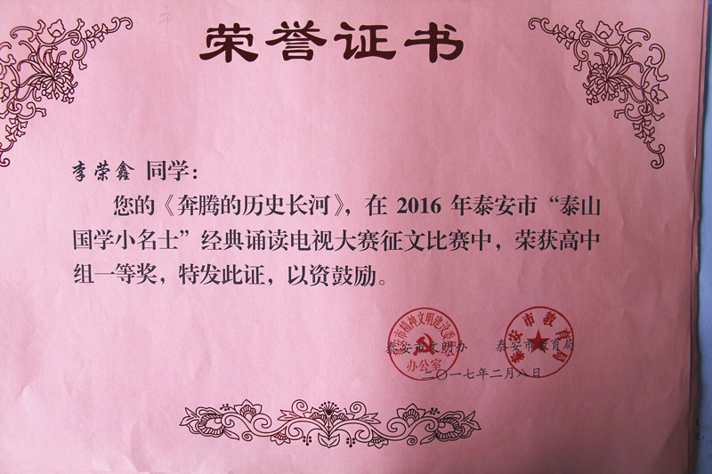 “泰山国学小名士”经典诵读电视大赛征文比赛