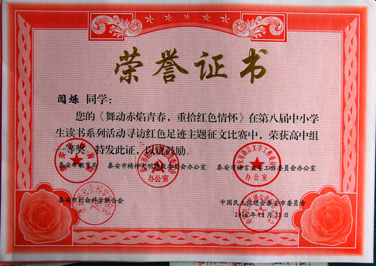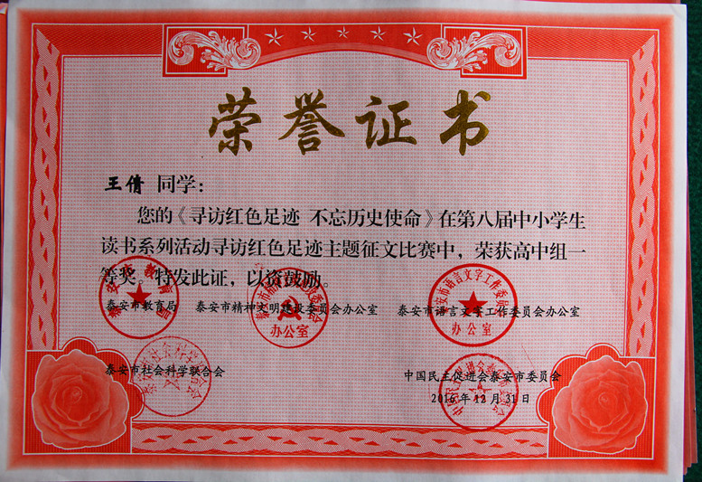 泰安市第八届中小学生读书活动寻访红色足迹主题征文比赛