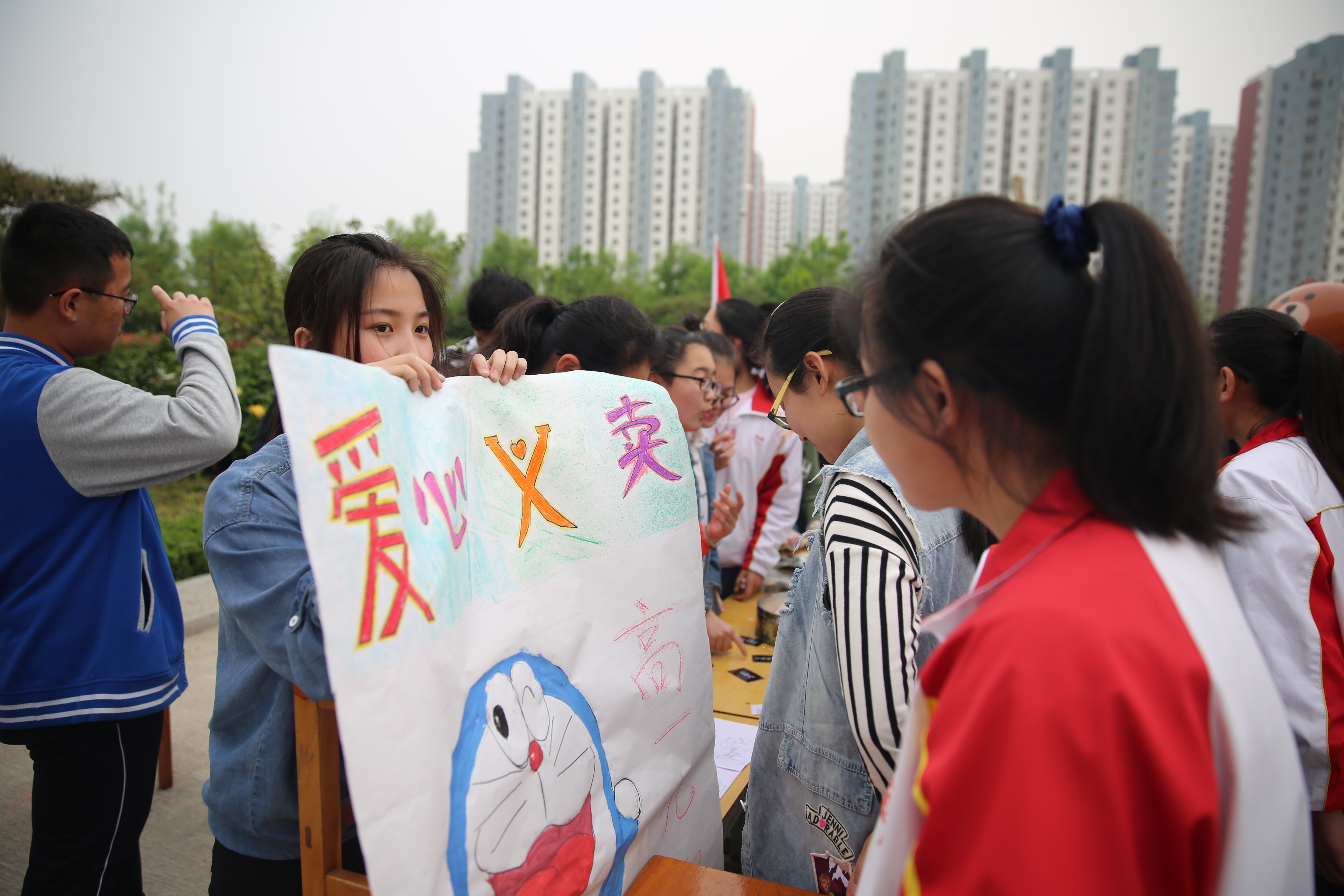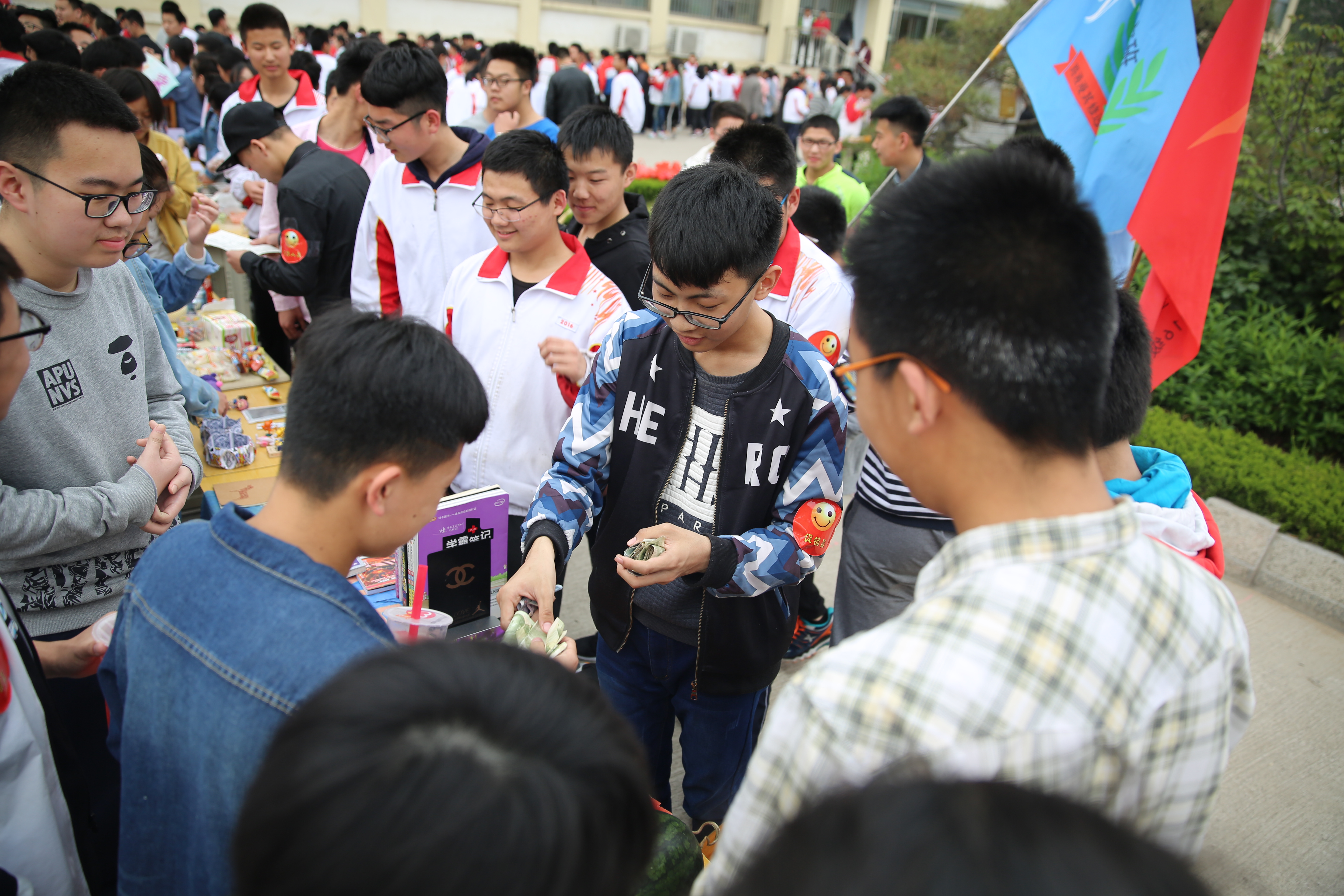 同学们出售的玩具、书籍、杂志、美食、手工作品、学习用品、生活用品等等,品种繁多、琳琅满目。义卖活动中,不少班级别出心裁,搞起了美食特卖,寿司、柠檬茶、鲜榨果汁、水果沙拉、奶昔、刨冰、棉花糖等应有尽有,各种美食都是供不应求,班主任老师也与学生们一起忙碌着。高二、一班还别出心裁地现场开展了套圈游戏活动,吸引了不少师生参与观看。整个活动现场人声鼎沸,热闹非凡。