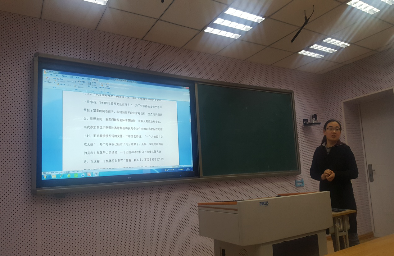 校长王祖丽同志作重要讲话,对历史教研组在课堂改进中有关学案编制、课程整合、学科组活动等方面的做法和在艰难中的变化、历史教师的工作精神以及所取得的成绩给与了充分肯定,要求各学科组结合学科特点开展有意义的活动。王校长结合自己的从教历程,强调了学科发展中组长的重要性,要求学科组长、教学干部发挥重要作用,加快学科组建设,带领教师成长。
