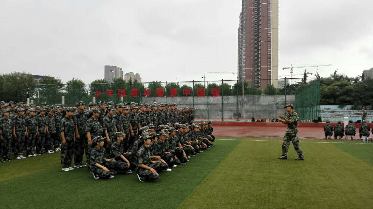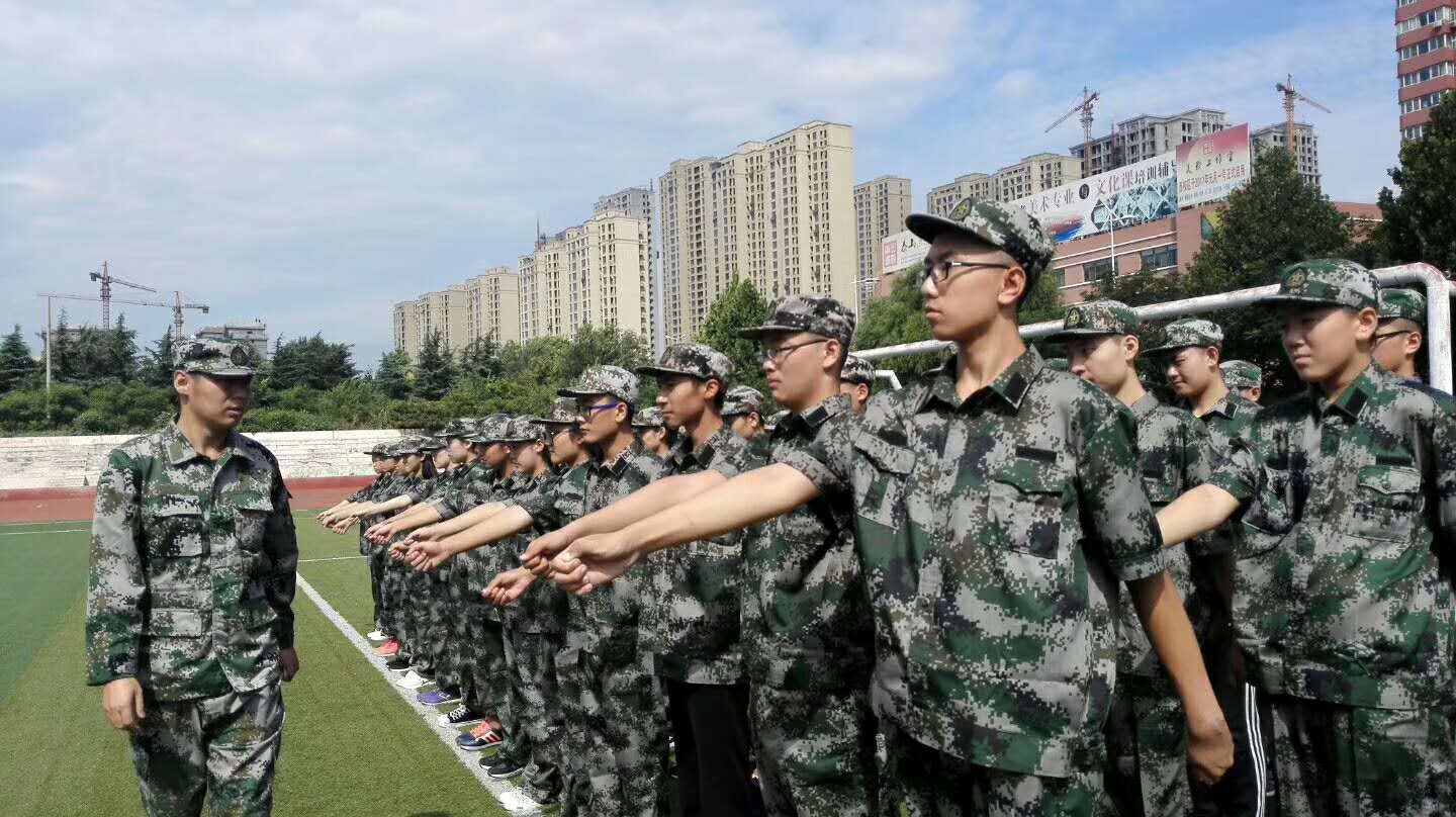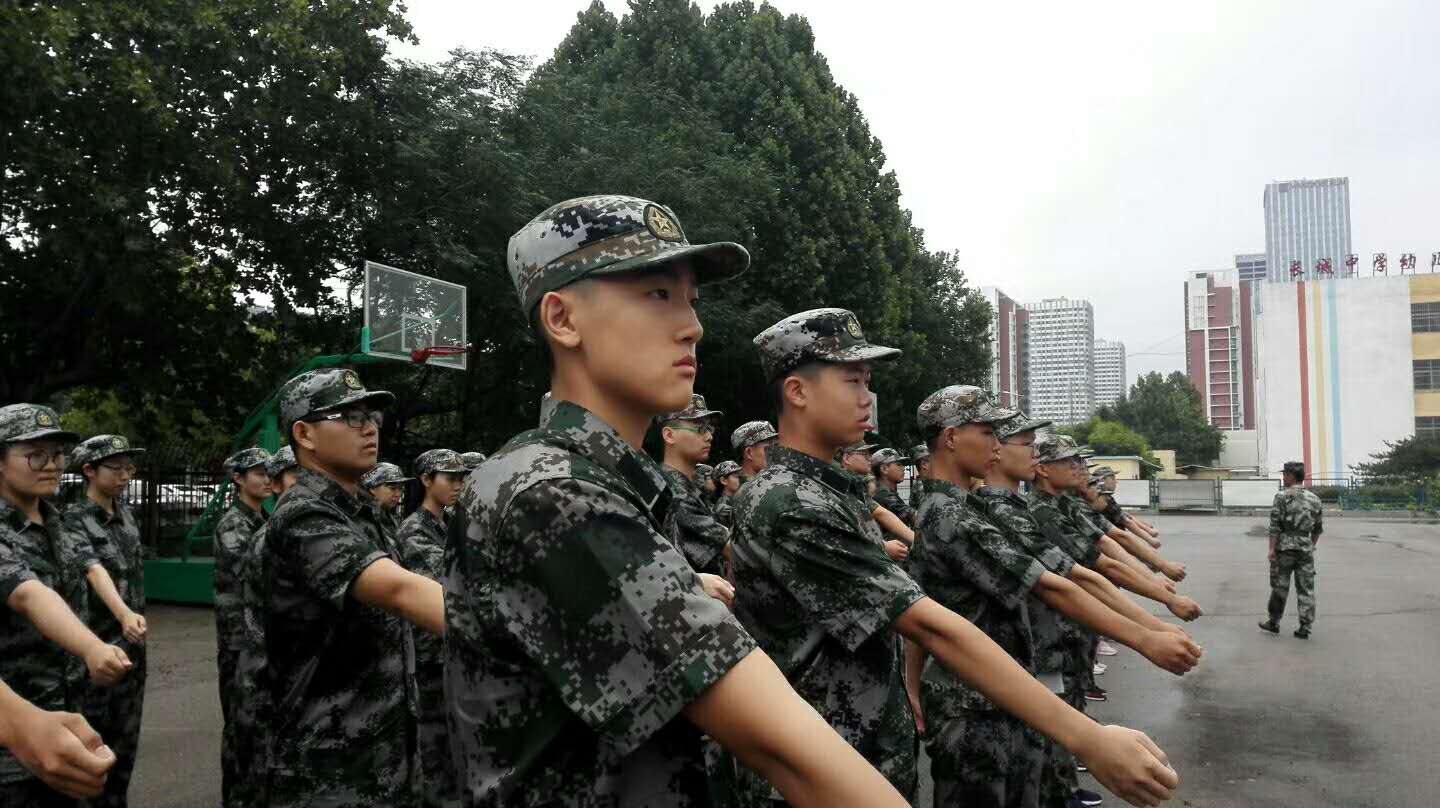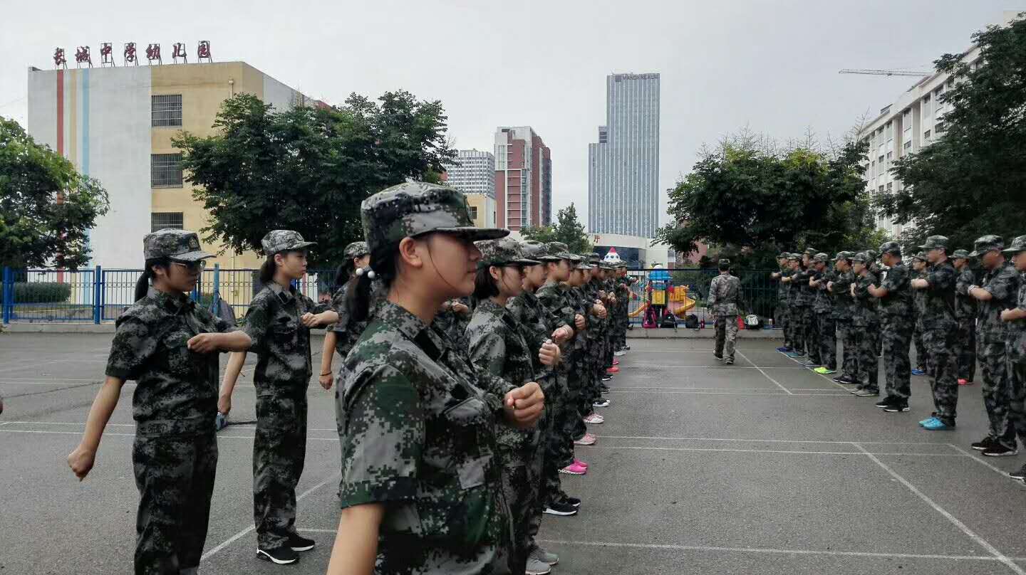 训练场上教官们严格要求同学们端正军姿、行军礼、踢正步、列队训练。简单的动作,在训练场上被无数次重复,同学们正学会用自己的心去真切体会军人的钢铁意志。在教官的带领下同学们的动作整齐划一,个个英姿飒爽。虽然辛苦,但“宝剑锋从磨砺出,梅花香自苦寒来”,通过军事化训练,使得同学们的忍耐力、持久力、自理能力等各方面均得到了提升。同学们少了份娇气,多了份坚强;少了份依赖,多了份自立。