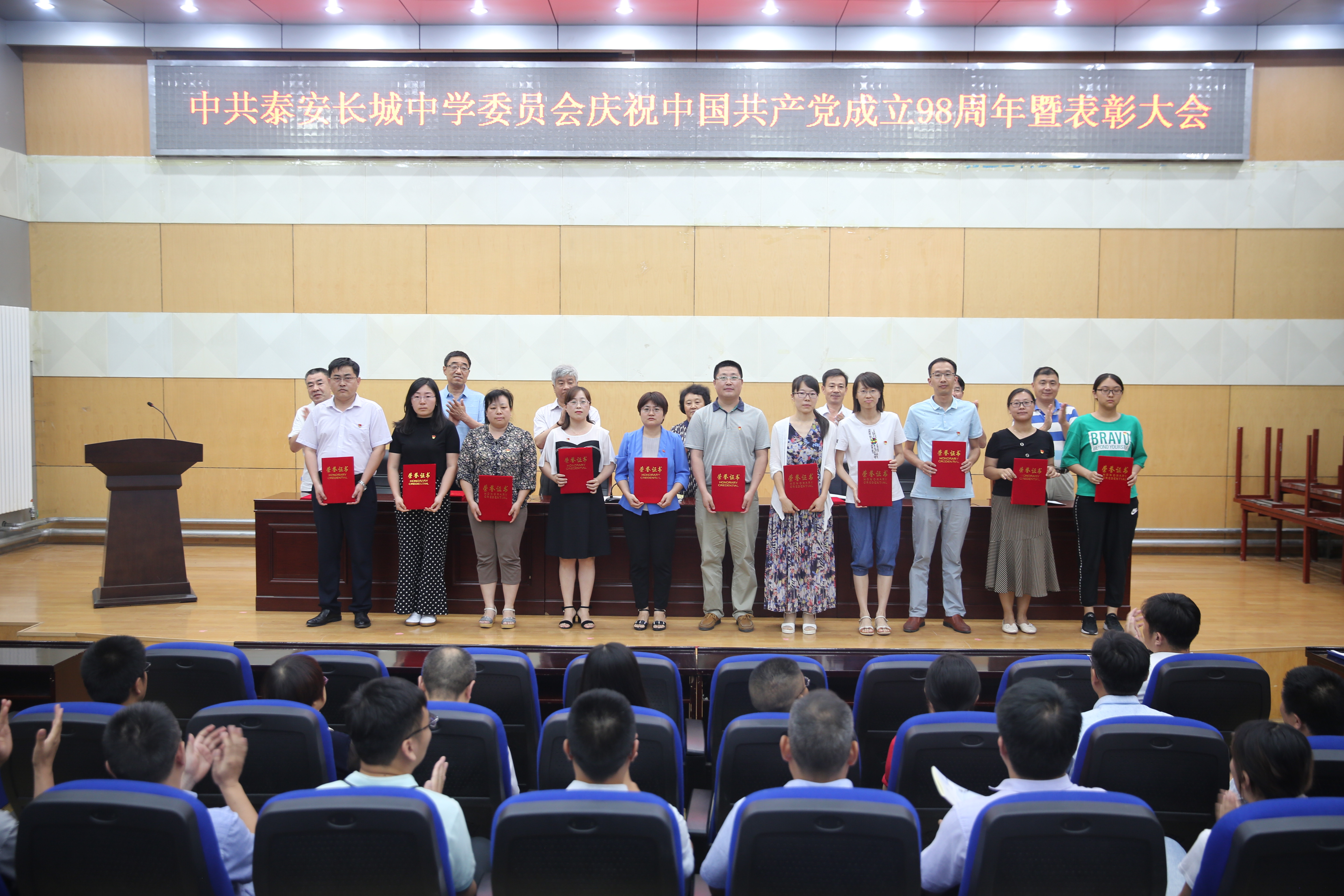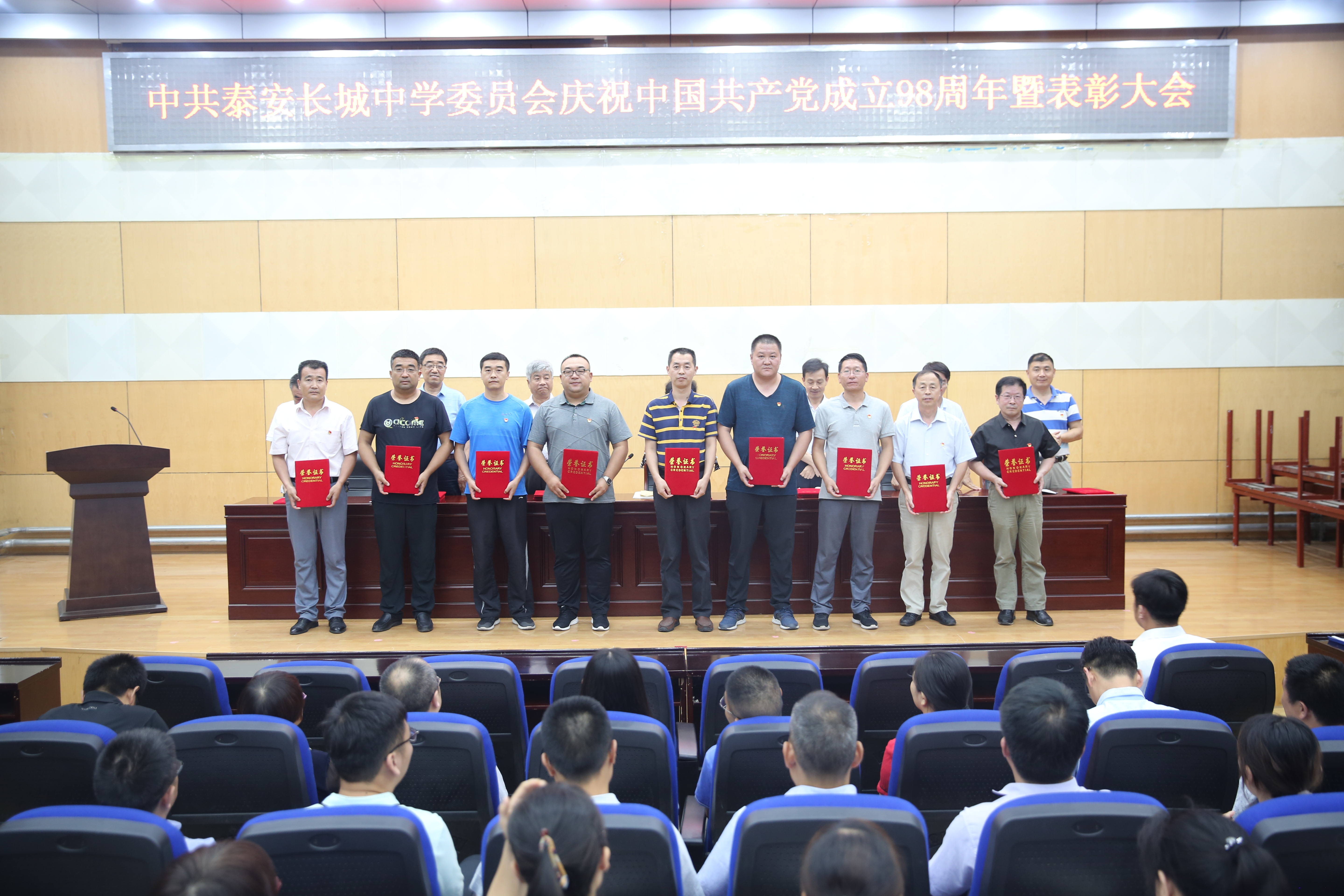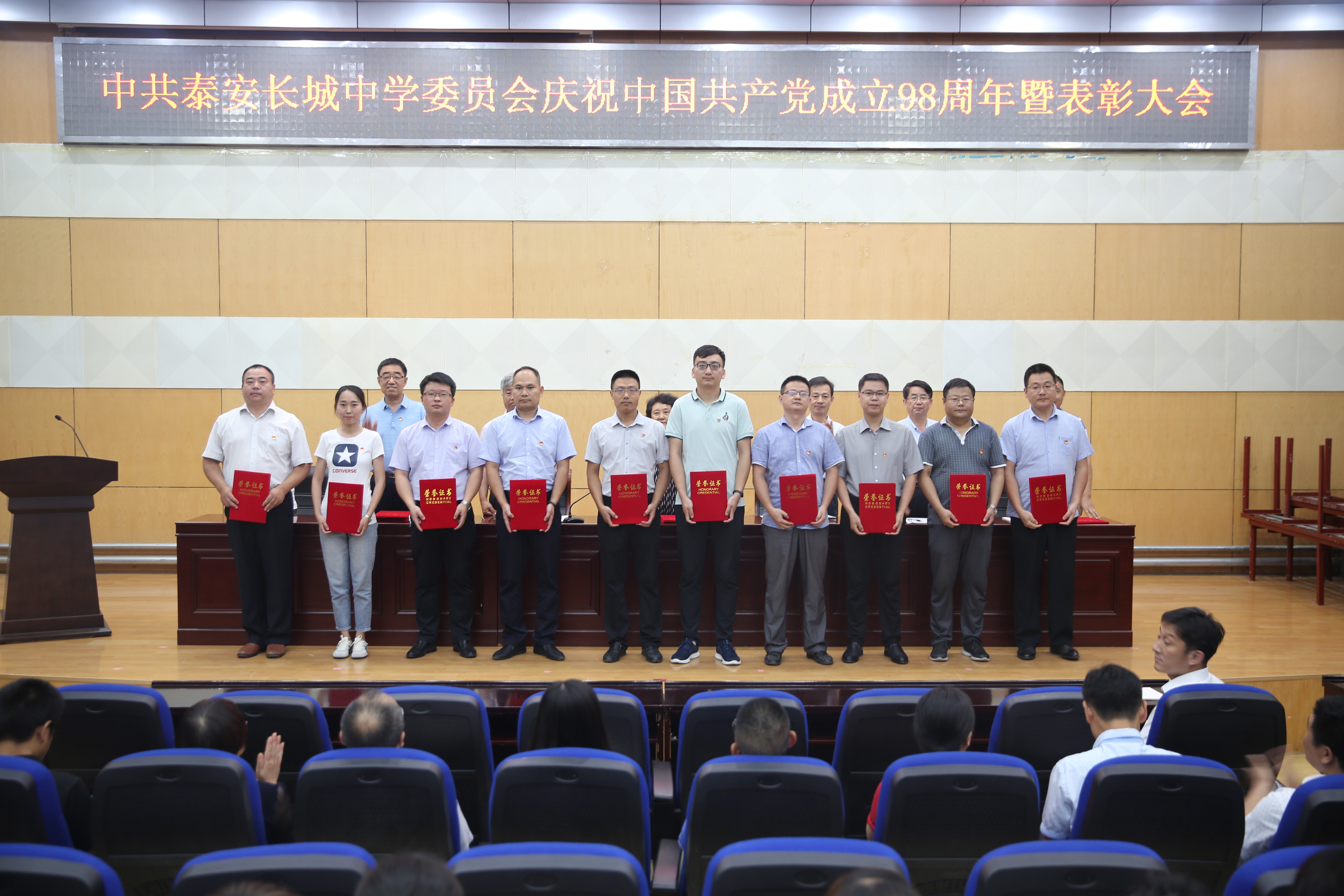 7月1日下午,www.vwin5.com在一楼报告厅召开“庆祝中国共产党成立98周年暨表彰大会”,庆祝党的华诞,回顾党的光辉历程,讴歌党的丰功伟绩,表彰先进,交流工作。学校全体党员、预备党员及入党积极分子参会,学校党委副书记、副校长刘庆良同志主持会议。