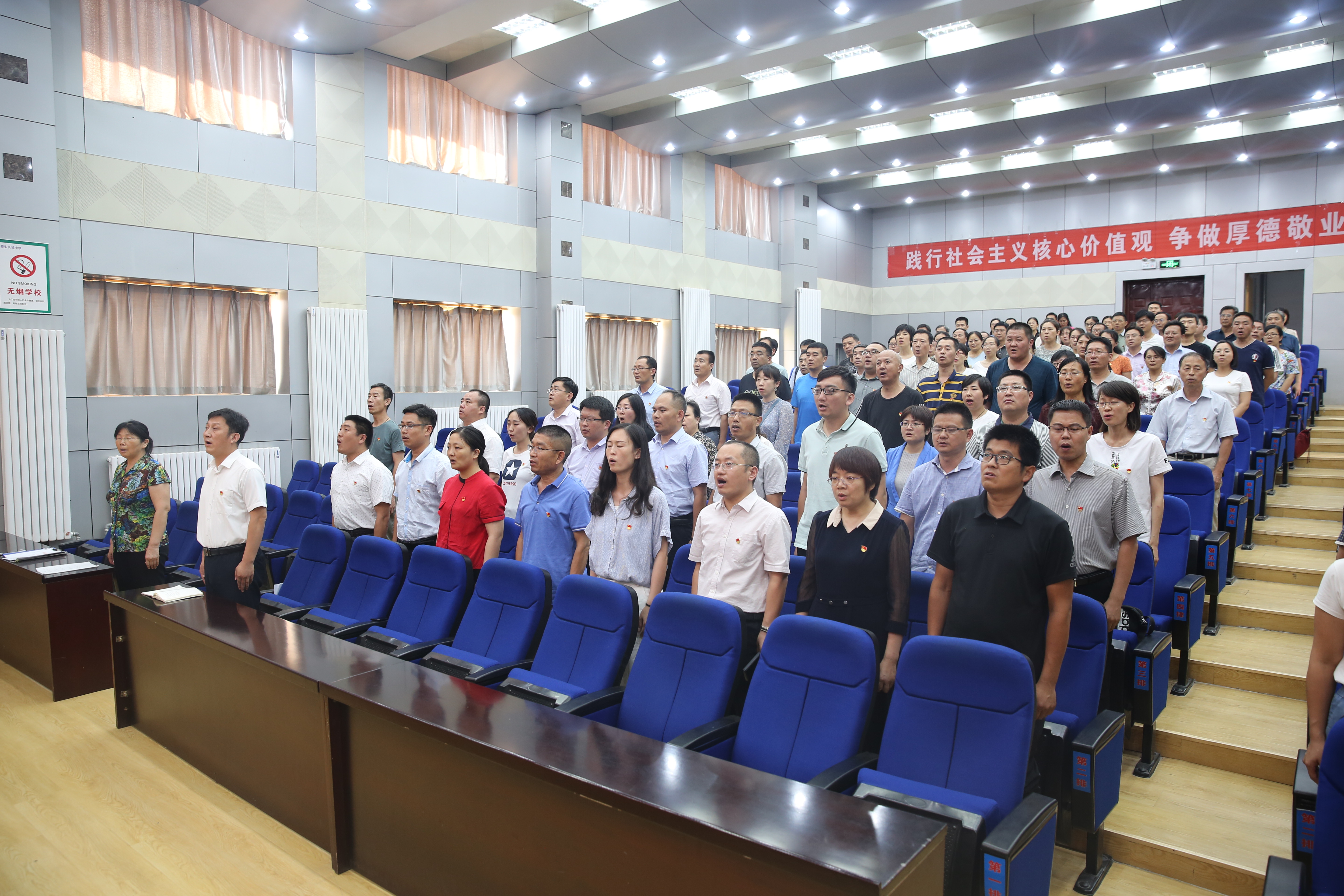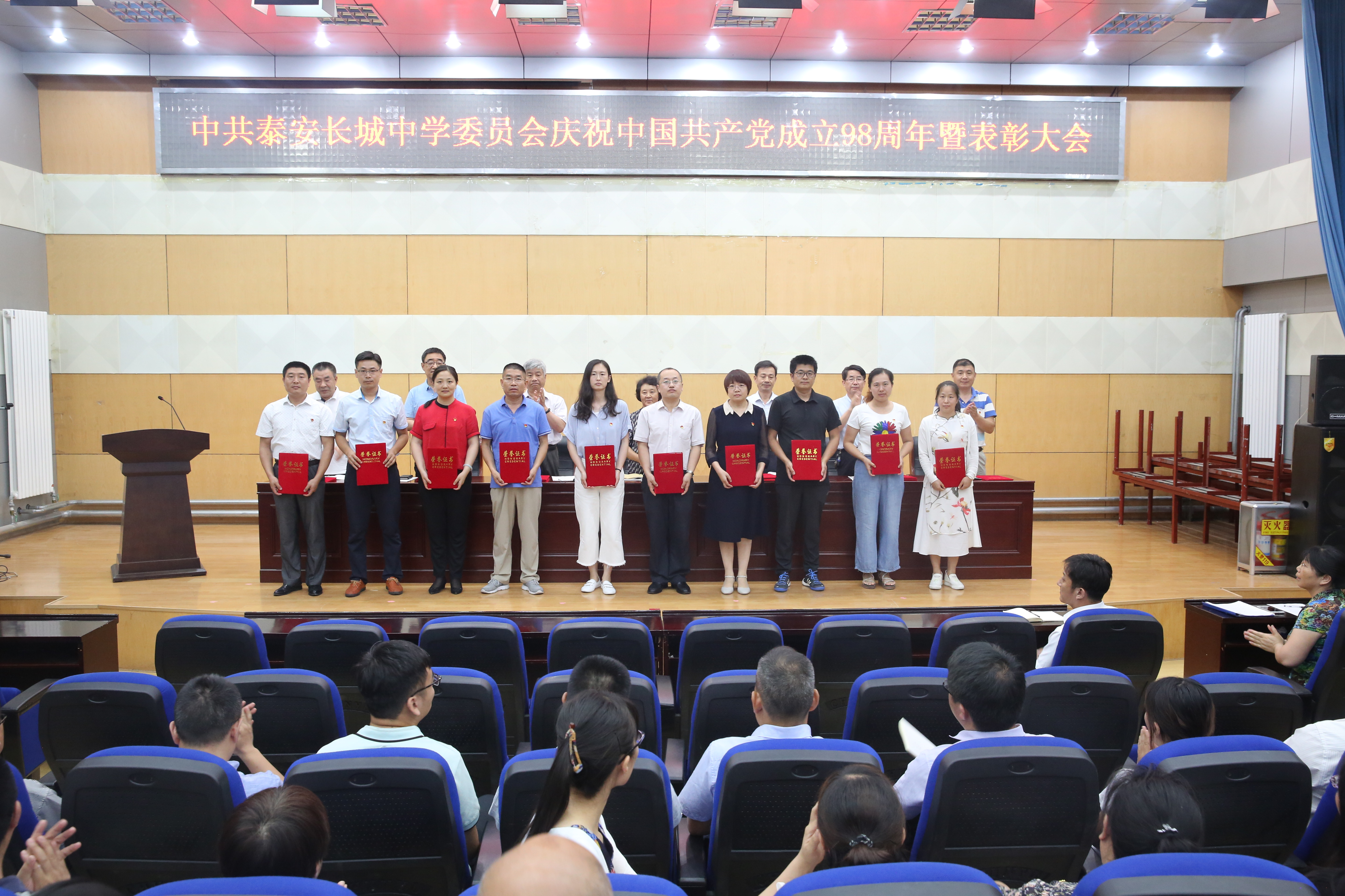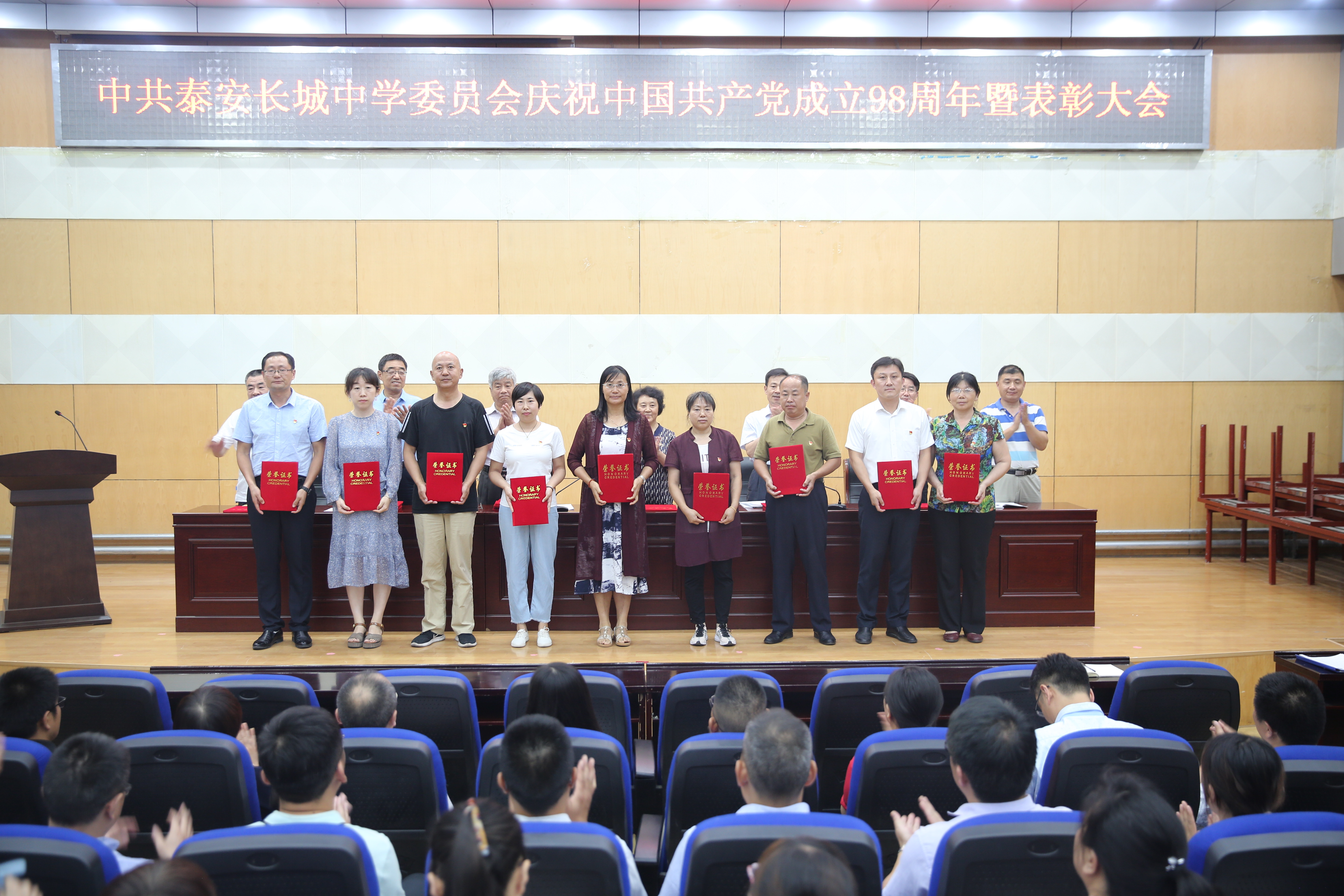 7月1日下午,www.vwin5.com在一楼报告厅召开“庆祝中国共产党成立98周年暨表彰大会”,庆祝党的华诞,回顾党的光辉历程,讴歌党的丰功伟绩,表彰先进,交流工作。学校全体党员、预备党员及入党积极分子参会,学校党委副书记、副校长刘庆良同志主持会议。