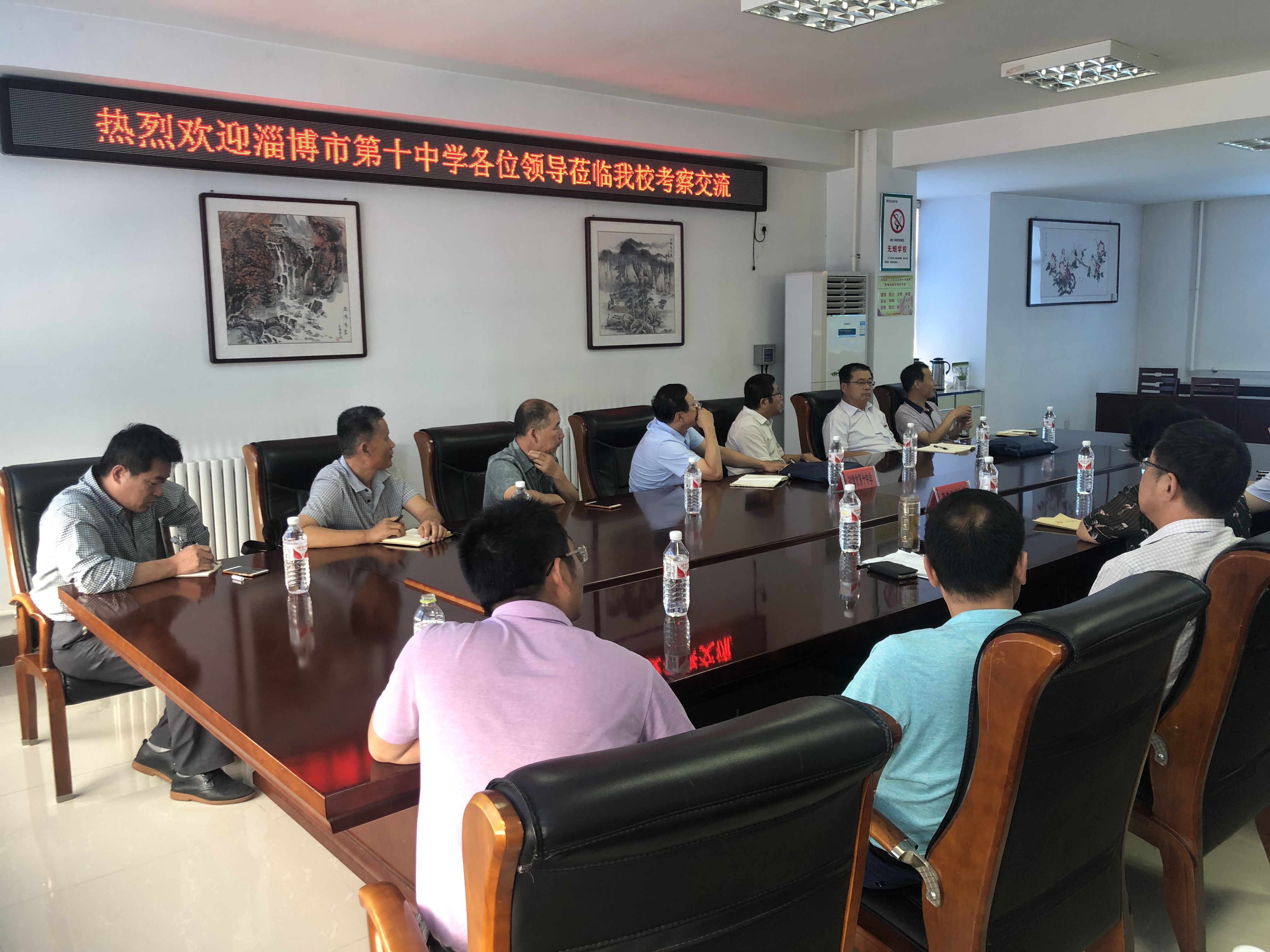 7月9日,淄博第十中学张云鼎校长带领学校班子成员、全体中层干部、教研组长一行30人来www.vwin5.com考察交流。王祖丽校长为来访客人介绍了学校近十年的发展情况,王德海副校长和张万泉副校长分别介绍了www.vwin5.com教学方面和学生管理方面的做法。办公室、教务处、课程中心、教科所、政教处、团委等部门负责人与来访人员就教师专业成长、课堂教学改进、学校德育、三自教育、学校文化建设、文明校园建设等方面进行了深入交流。