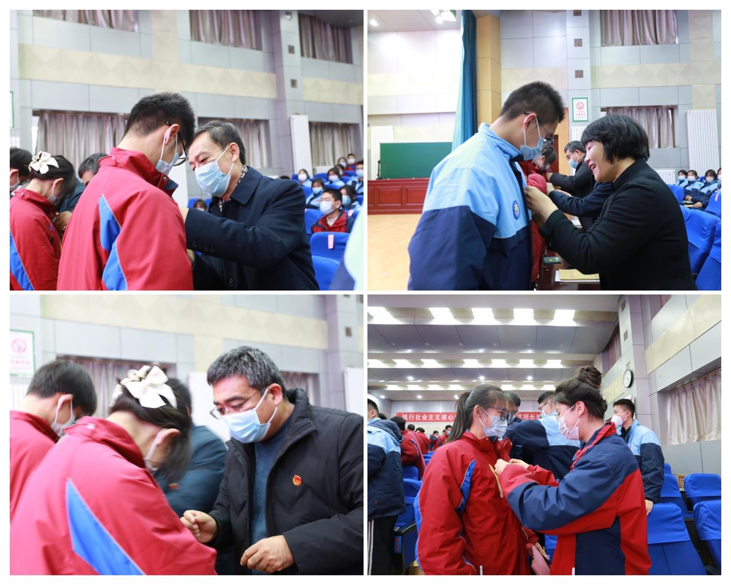 团委书记颜斌宣读了2023年下半年新发展团员名单。校领导与老团员为新团员颁发团员证,佩戴团徽,鲜艳的团徽闪耀着熠熠光芒。