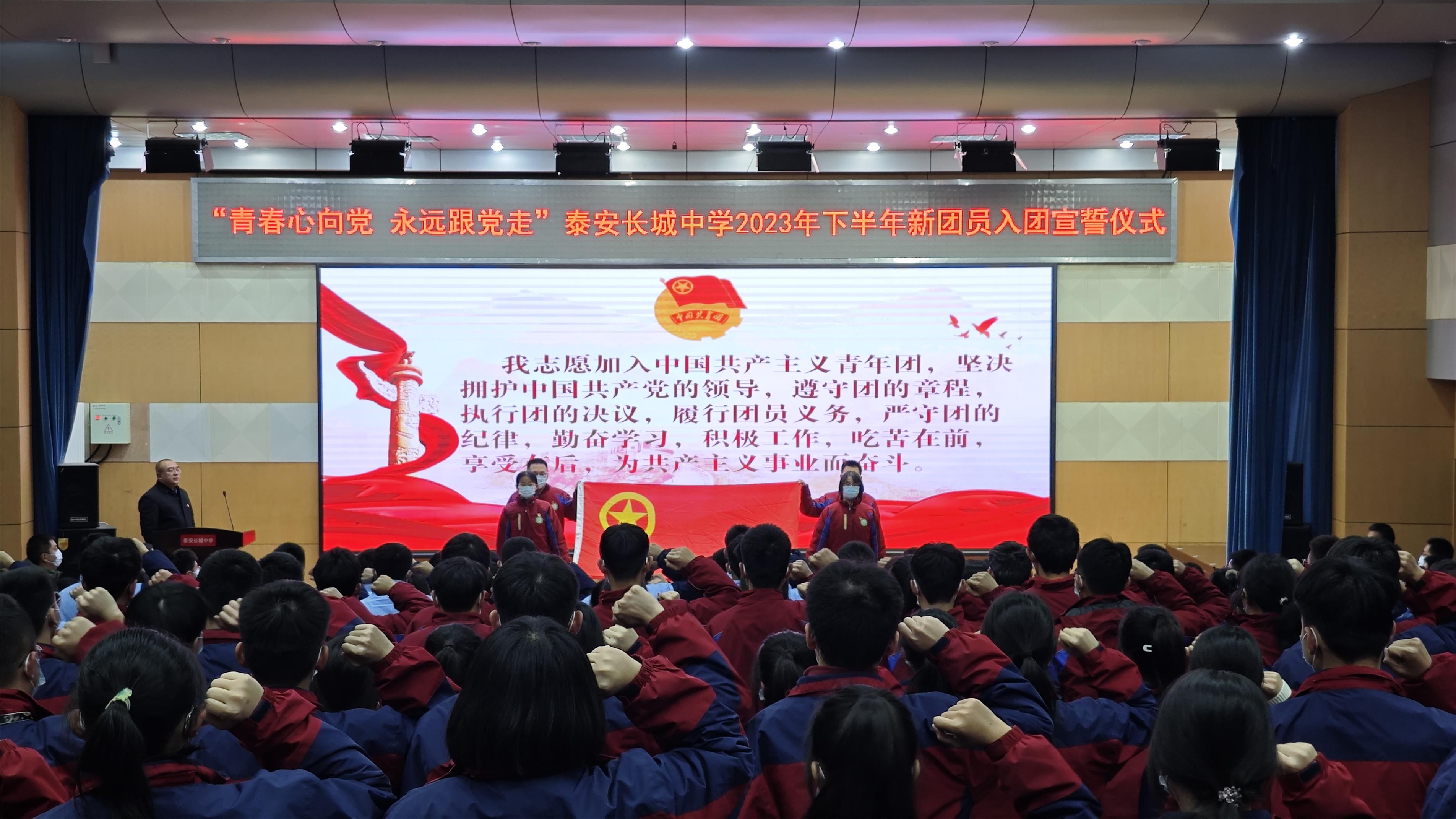 在曹瑞老师的带领下,全体团员高举右拳面对鲜艳的团旗庄严宣誓,承诺将坚决拥护中国共产党的领导,遵守团的章程,执行团的决议,履行团员义务,严守团的纪律,勤奋学习,努力工作,为共产主义事业而奋斗。青春的誓言慷慨激昂,表达了同学们为团组织增光添彩的豪迈激情。