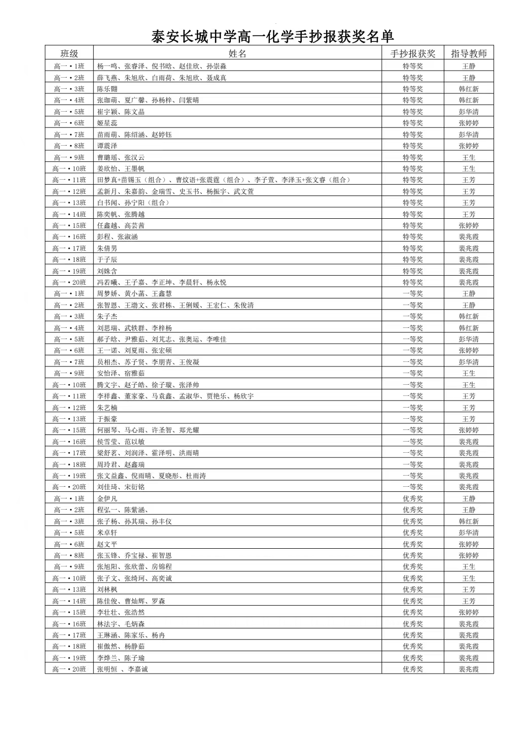 经高一化学备课组初选,化学教研组和年级再根据主题符合程度、文字工整程度、画面美观程度、内容丰富程度、布局合理程度、颜色运用合理程度等标准进行第二轮筛选。最终评选出55个特等奖,57个一等奖,34个优秀奖。