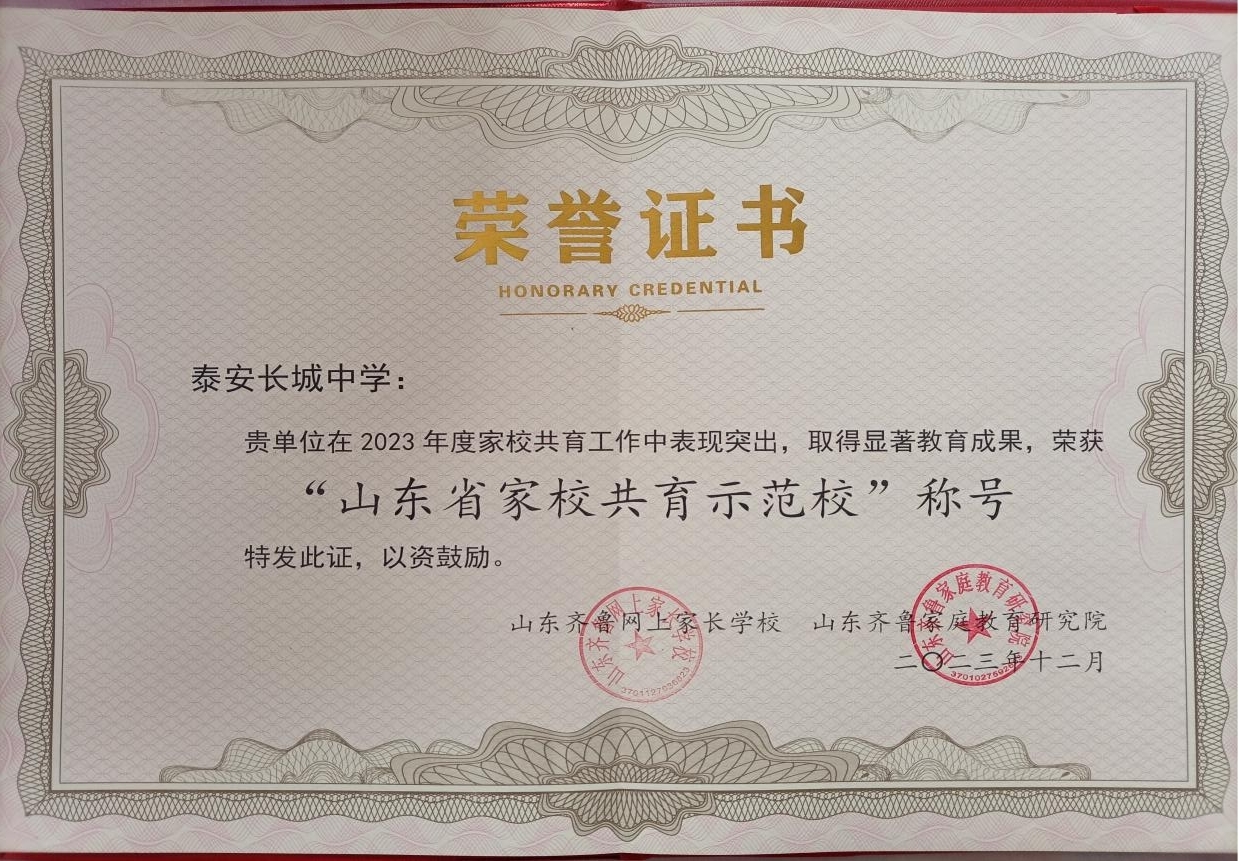 近日,德赢天下_www.vwin01.com在2023年度家校共育工作中表现突出,取得显著教育成果,荣获“山东省家校共育示范学校”称号。