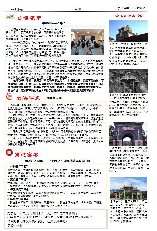 报纸承载历史,墨香散发荣光。历史简报丰富了学生的课余生活,满足了学生的求知欲,又弘扬了地方文化、传统文化,激发了学生的自豪感、自信心。德赢天下_www.vwin01.com历史教研组将依托历史学科基地,群策群力,为丰富育人形式、提升育人实效、促进教师专业成长、推动学校高质量发展做出应有的贡献!
