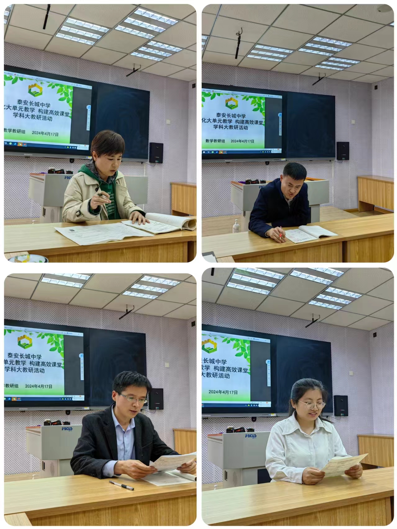 两位授课教师陈述教学设计和教学反思,全体数学组教师依托课例进行深入研讨,从新课标教育教学理念的解读到学科核心素养内涵的挖掘,从课堂教学设计、教育教学活动优化、目标达成、学生潜能挖掘等诸方面进行详细研讨,并提出建议和措施。